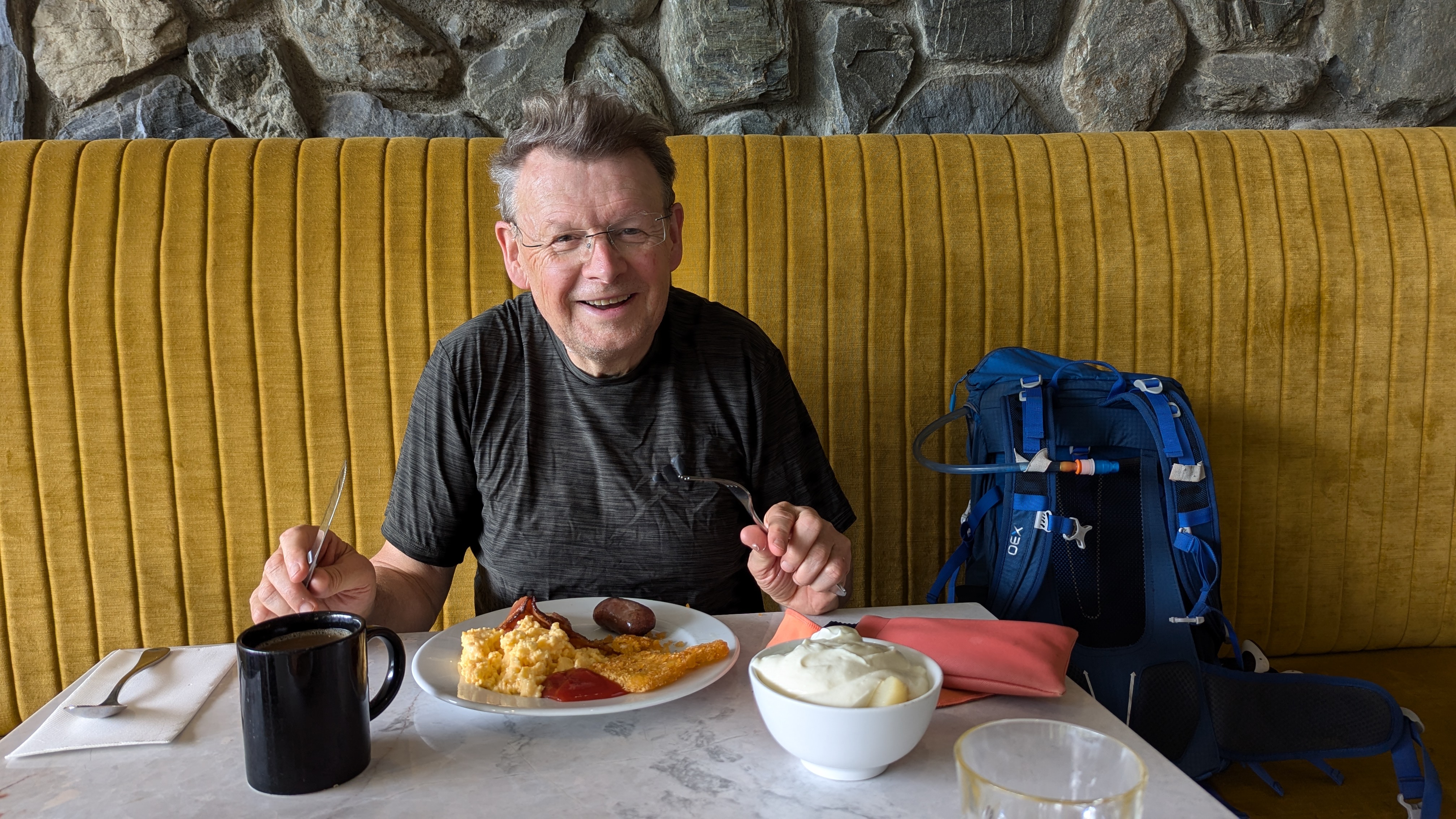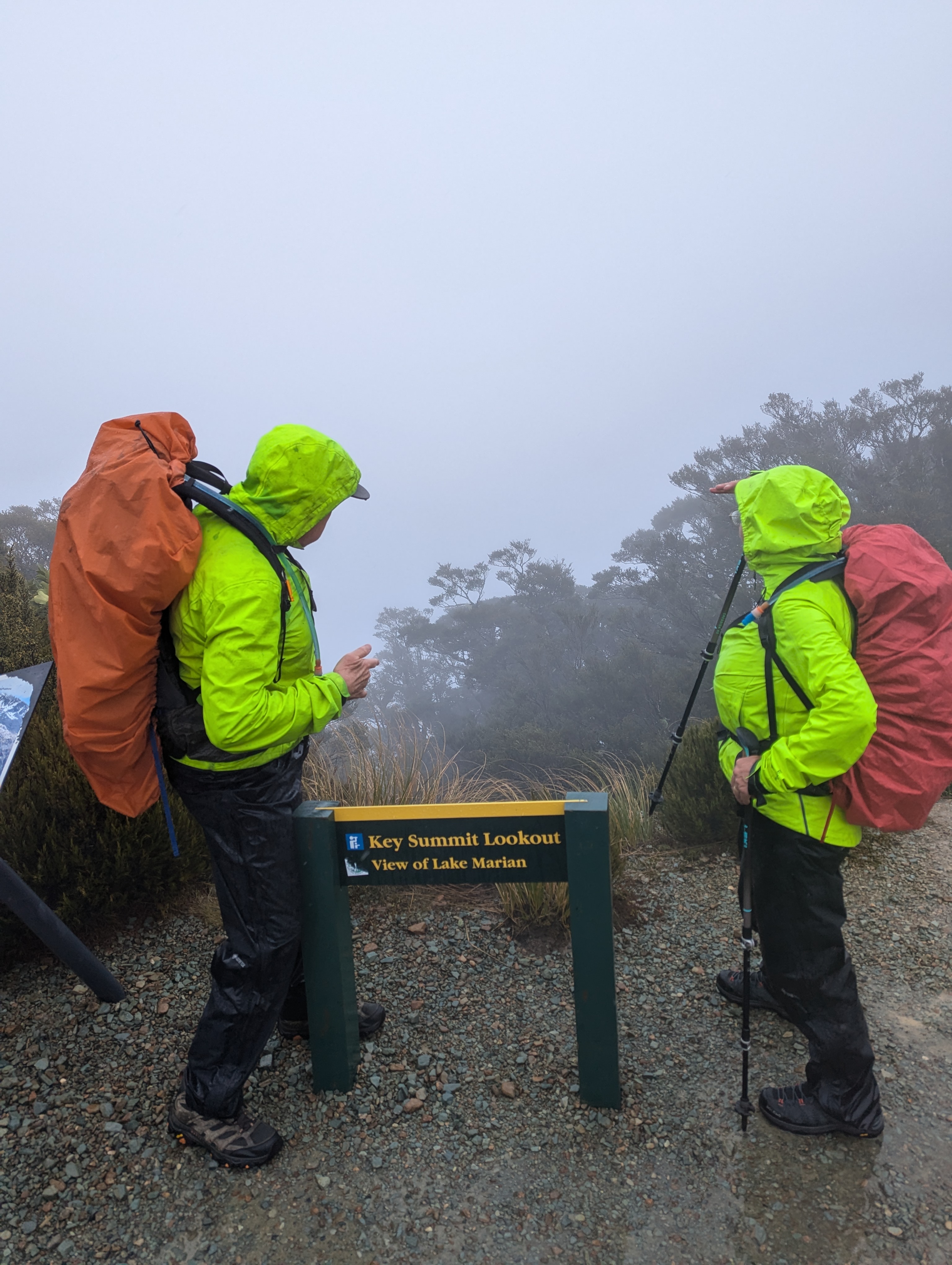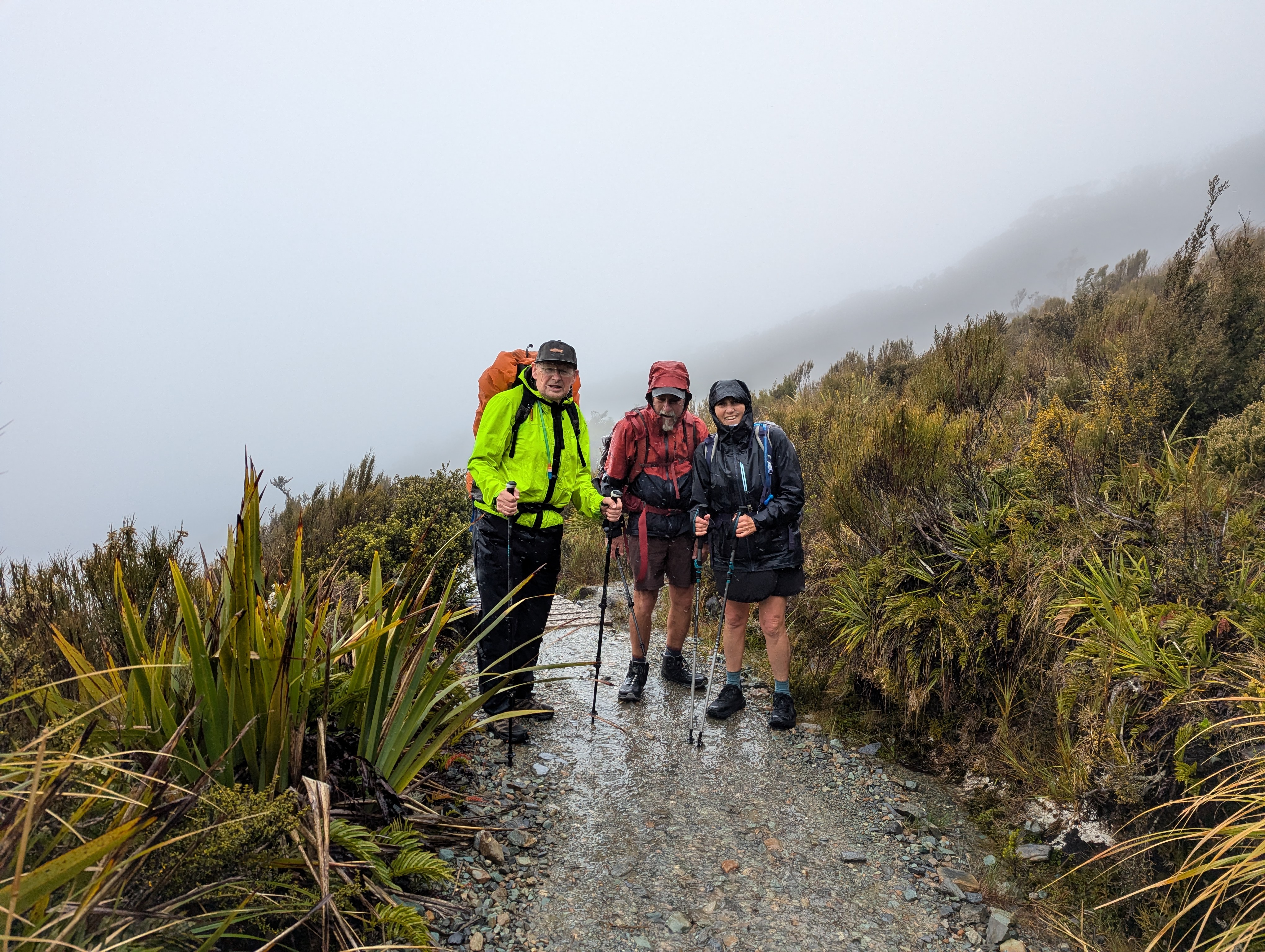 We carried on walking up and got to a “viewpoint” but, of course, there was no view – just clouds and rain. We still felt a small measure of elation at reaching the top of our final walk of this trip with all our group.