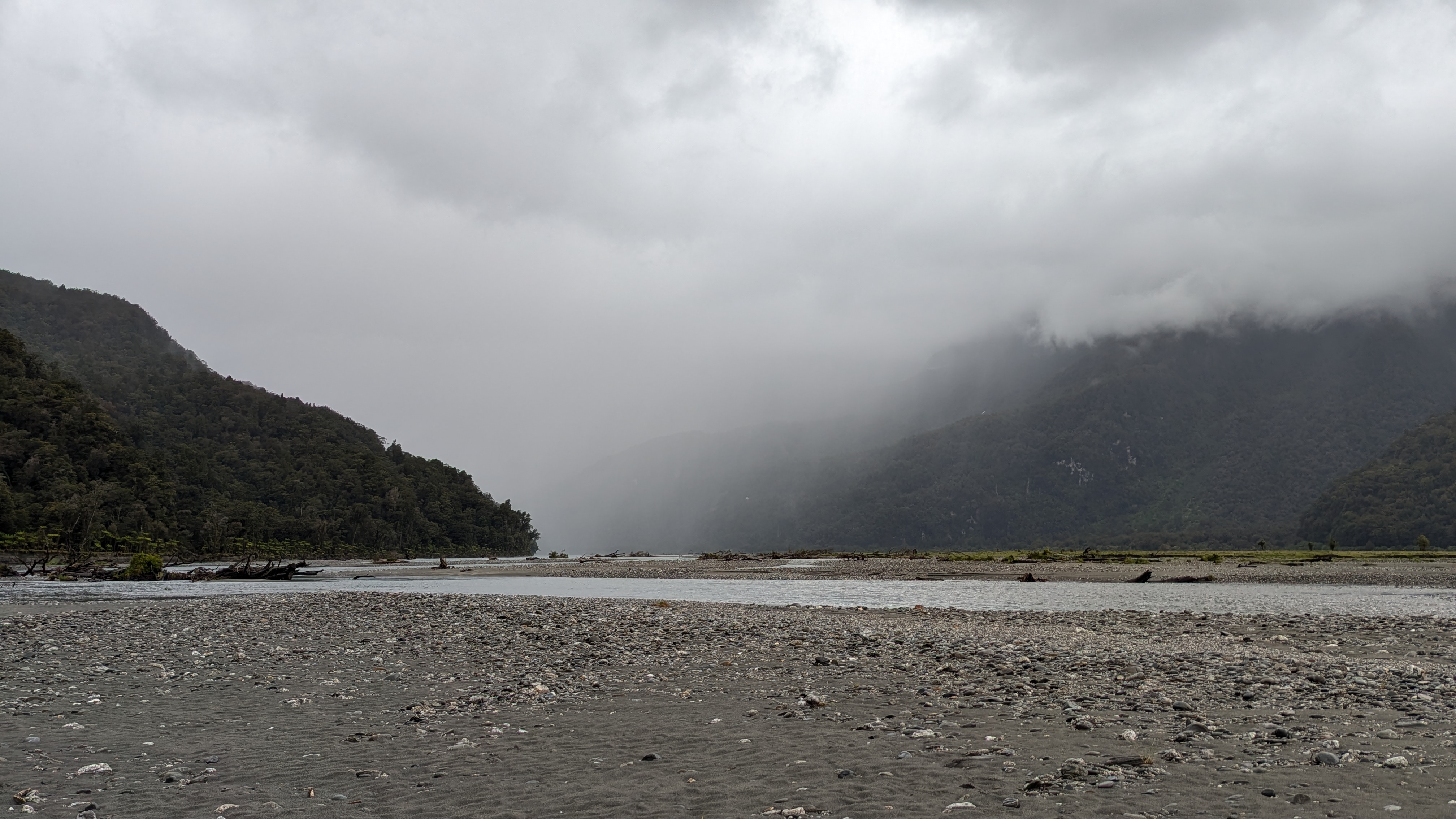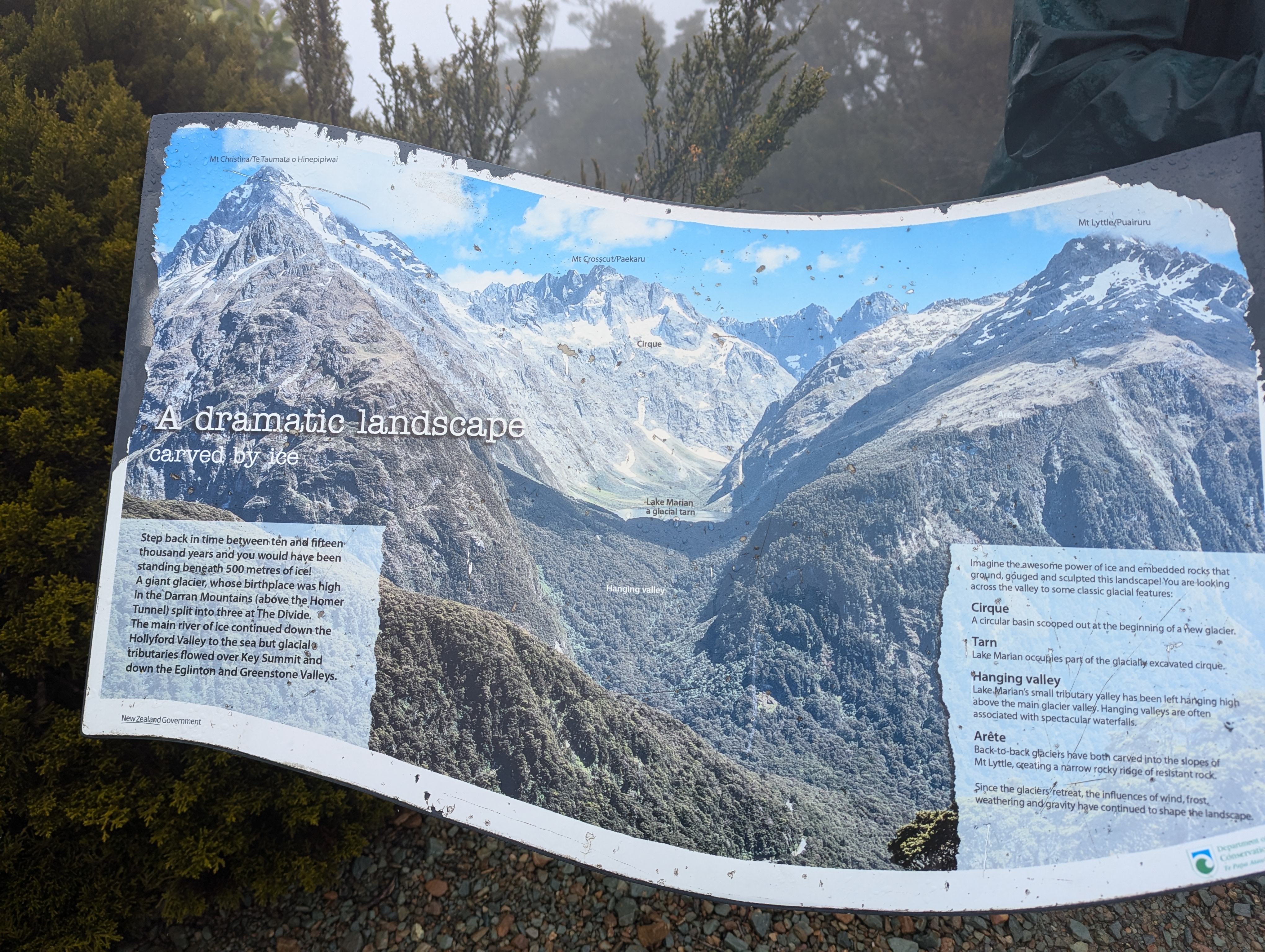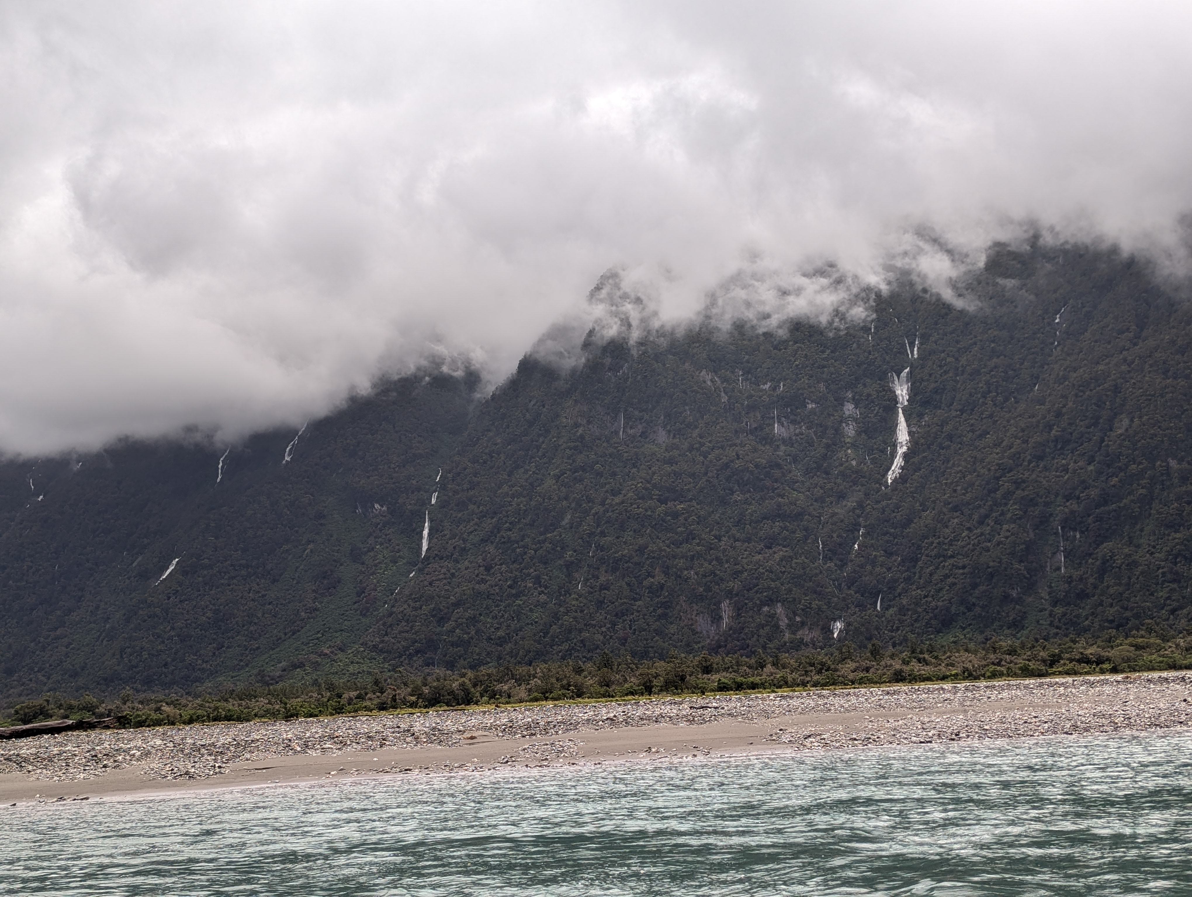We are heading towards the end of our trip around Aotearoa, as we are now learning to call New Zealand. Today we started from our accommodation and drove from Te Anau to walk the beginning of the Routeburn Track. The clouds were building and it was raining fairly hard by the time we started the walk.