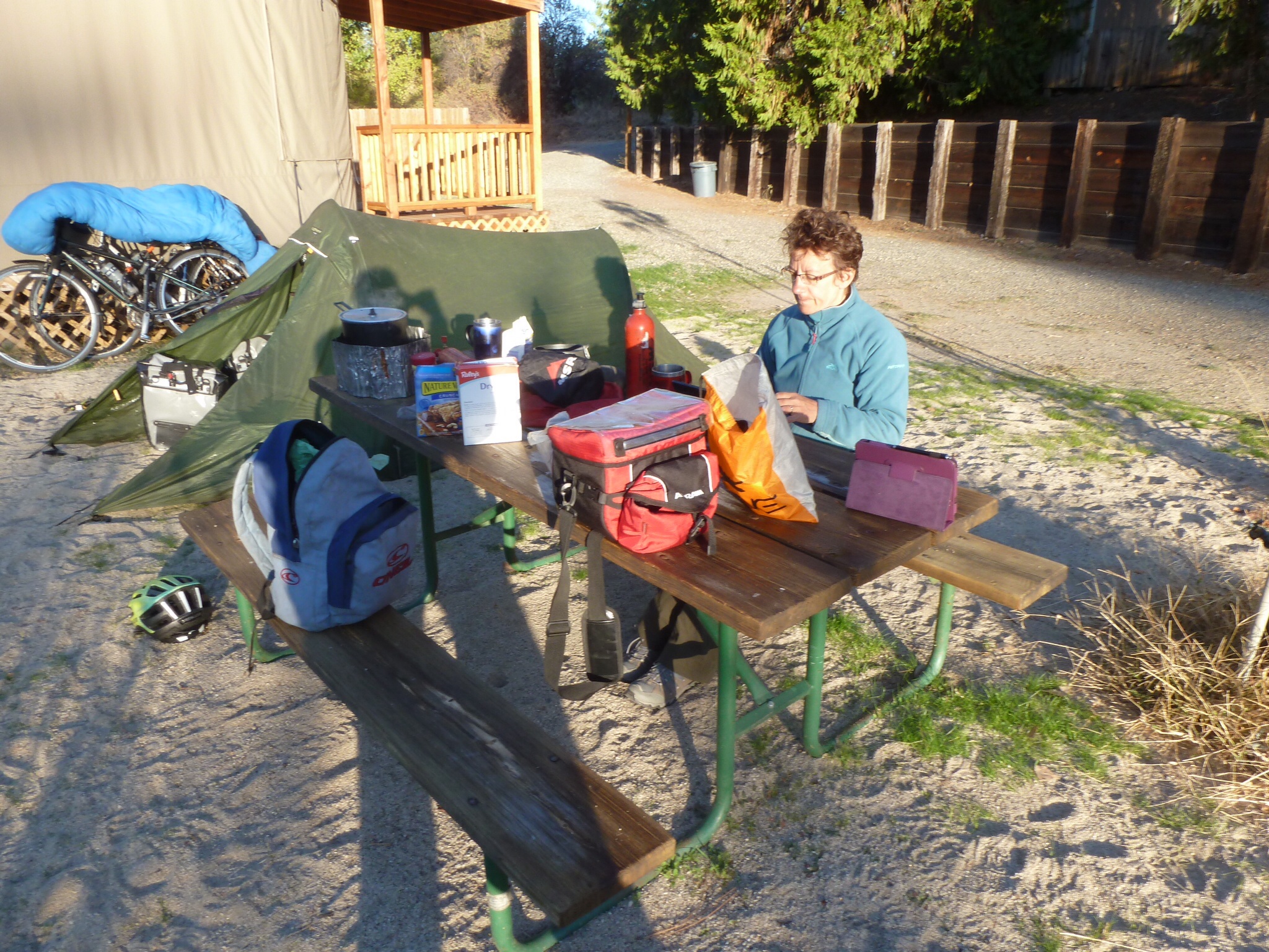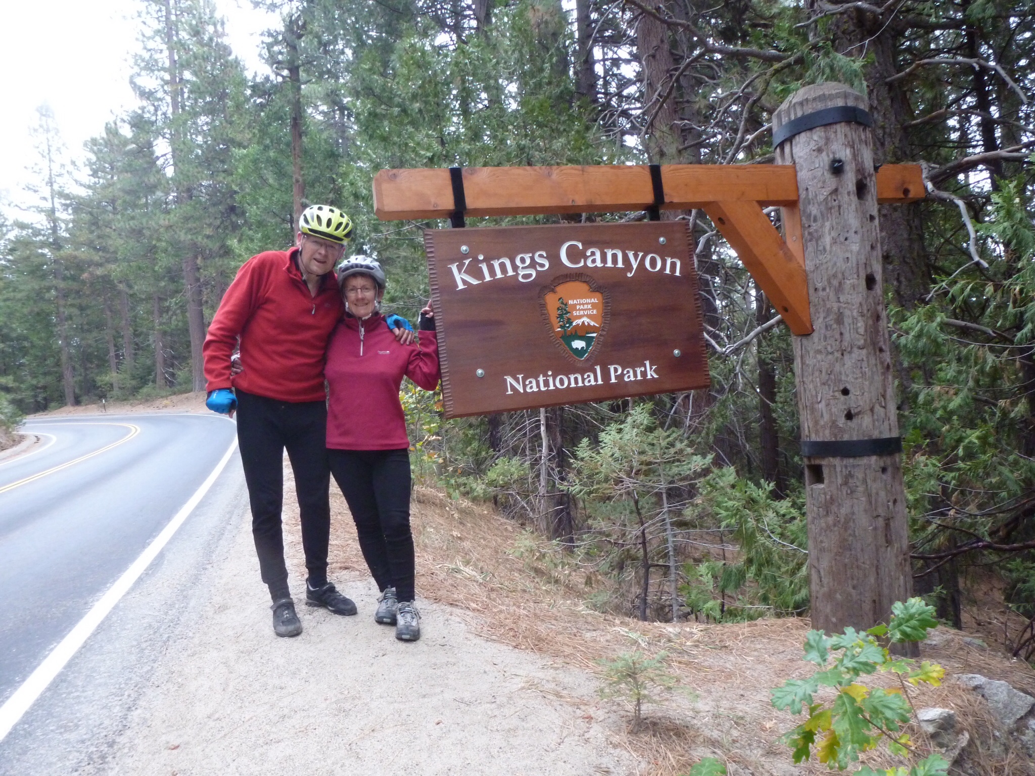 We had spent the previous evening cogitating our various options on what to today. Our original plan had been to leave our luggage and cycle down the King’s Canyon and back but 2 major factors mitigated against this – the national park was closed and it was difficult to find out what accommodation/camping was open but more importantly the forecast was for a dramatic change of weather with cold air blowing in a forecast of snow showers. We had decided our best option was to press on – although that did mean climbing over 7500ft before the long descent to Three Rivers. We therefore got up with some trepidation at the climb and the weather and lingering tiredness in our legs.