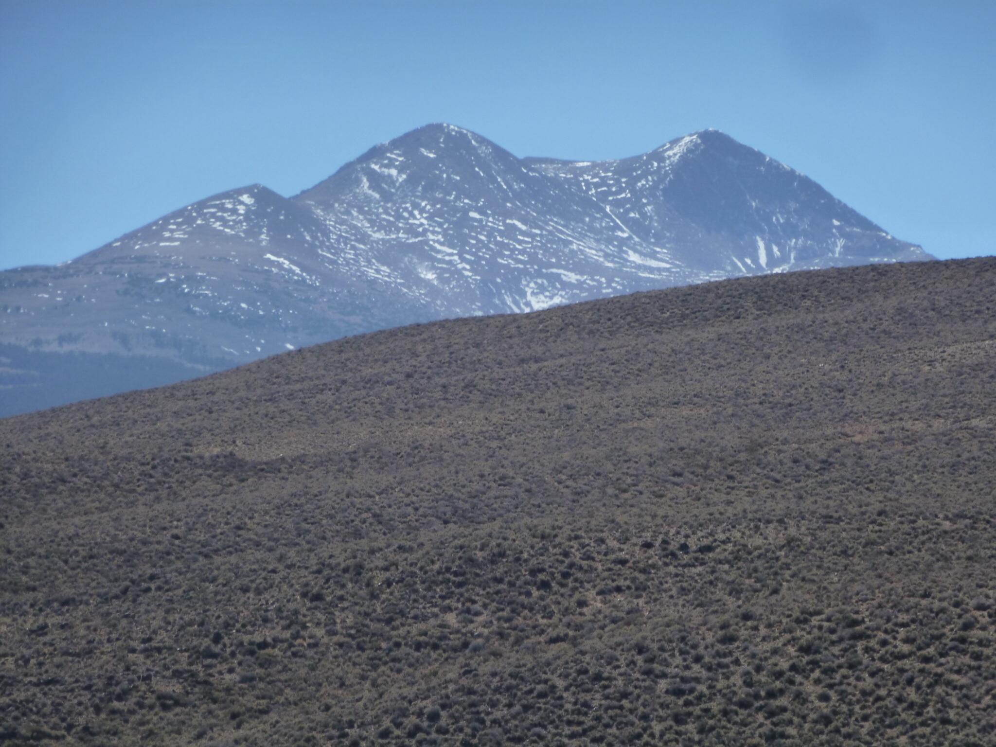 The road turned again and we had the wind at our backs as we reached the Devil’s Gate Pass (7519 feet) after an hour, meaning we had climbed 2000 feet from Walker. Then a lovely downhill for about half a mile and yet, as the road turned into the valley, the wind changed direction and hit us in the face. It was OK going down but then we hit the floor of the valley and the road turned directly into a roaring gale. Head down, low gear and pushing for 3 miles saw us cross the valley floor to reach Bridgeport (4 miles).