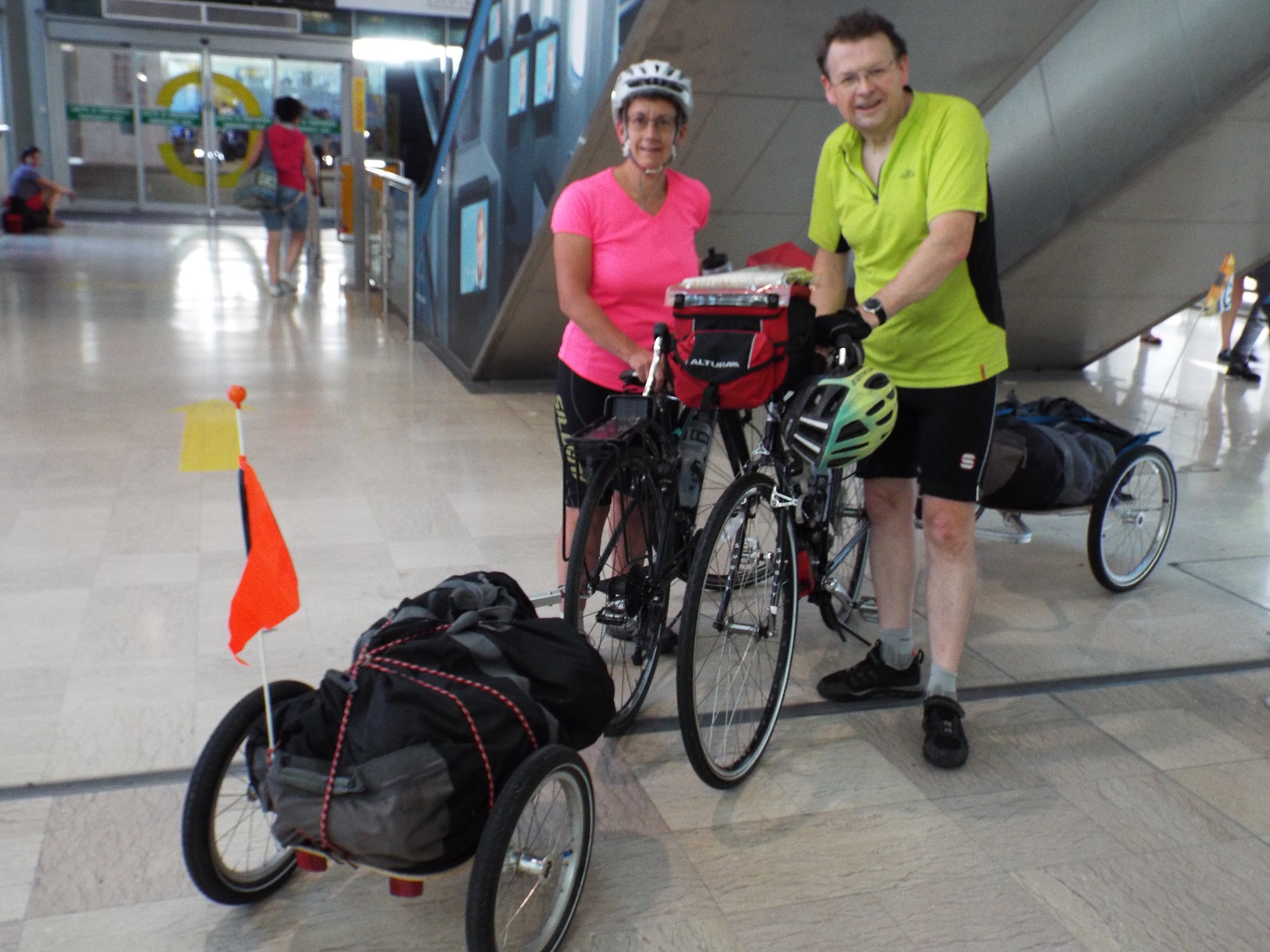 A bit later – total chaos at Gatwick but we must have looked so old and decrepit we were referred to “Special Assistance” (actually because they could not work out how we will wheel our bikes along the enormous snaking queue to Bag Drop) but once they had got over the fact that we were ‘jumping the queue’ checked in without a problem and successfully persuaded them that we did not need wheelchair assistance!
