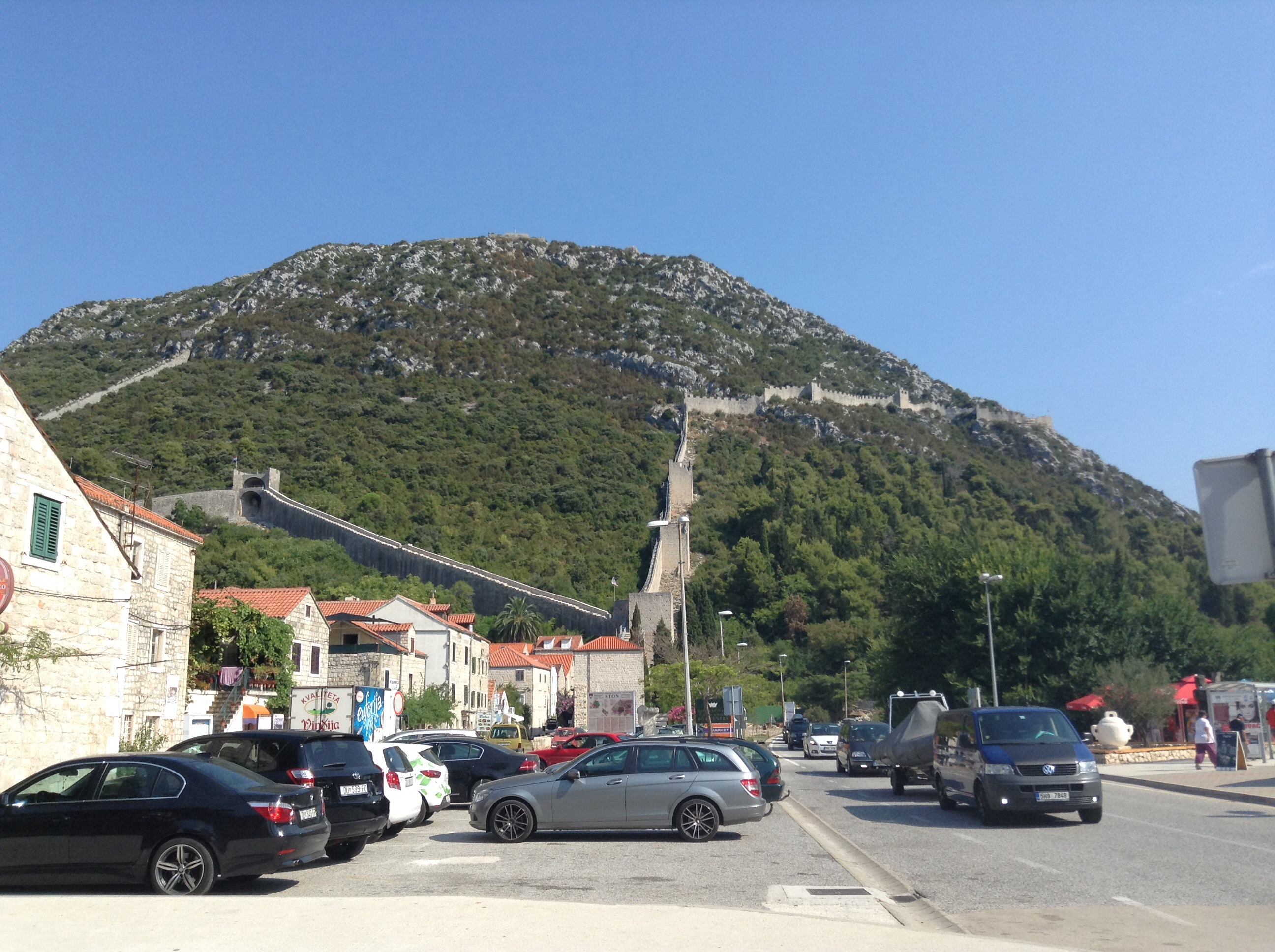 We rested during the 45 minute crossing and then started up the steep bank to join our old friend, the coast road (known as D8 here). It was 21km from the ferry port to Ploce where we planned to get another ferry. The D8 wound its way along the coast, busy but not too bad with a few climbs, some stunning scenery and a good surface. One almost gets used to the blue transparency of the water, little fishing boats and the yachts plying up and down (rarely under sail as far as we could see).