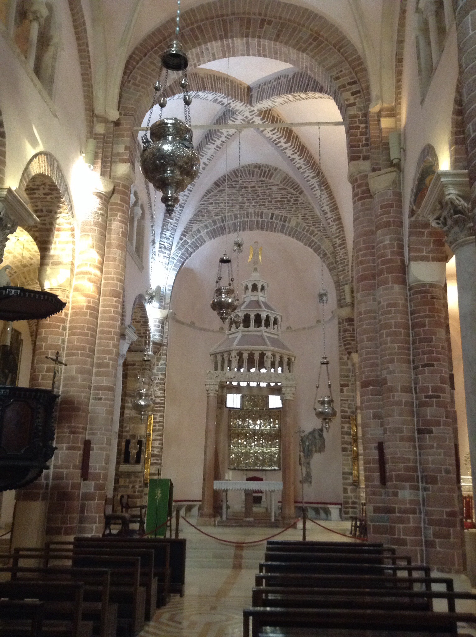 When we had recovered a bit we took a strolls round the walled old town. The cathedral had quite a different feel – catholic but with an orthodox feel to it. Columns of pink stone and wonderful silver alter piece. We glanced through the upstairs museum where much silverware was on display and the usual saints relics.