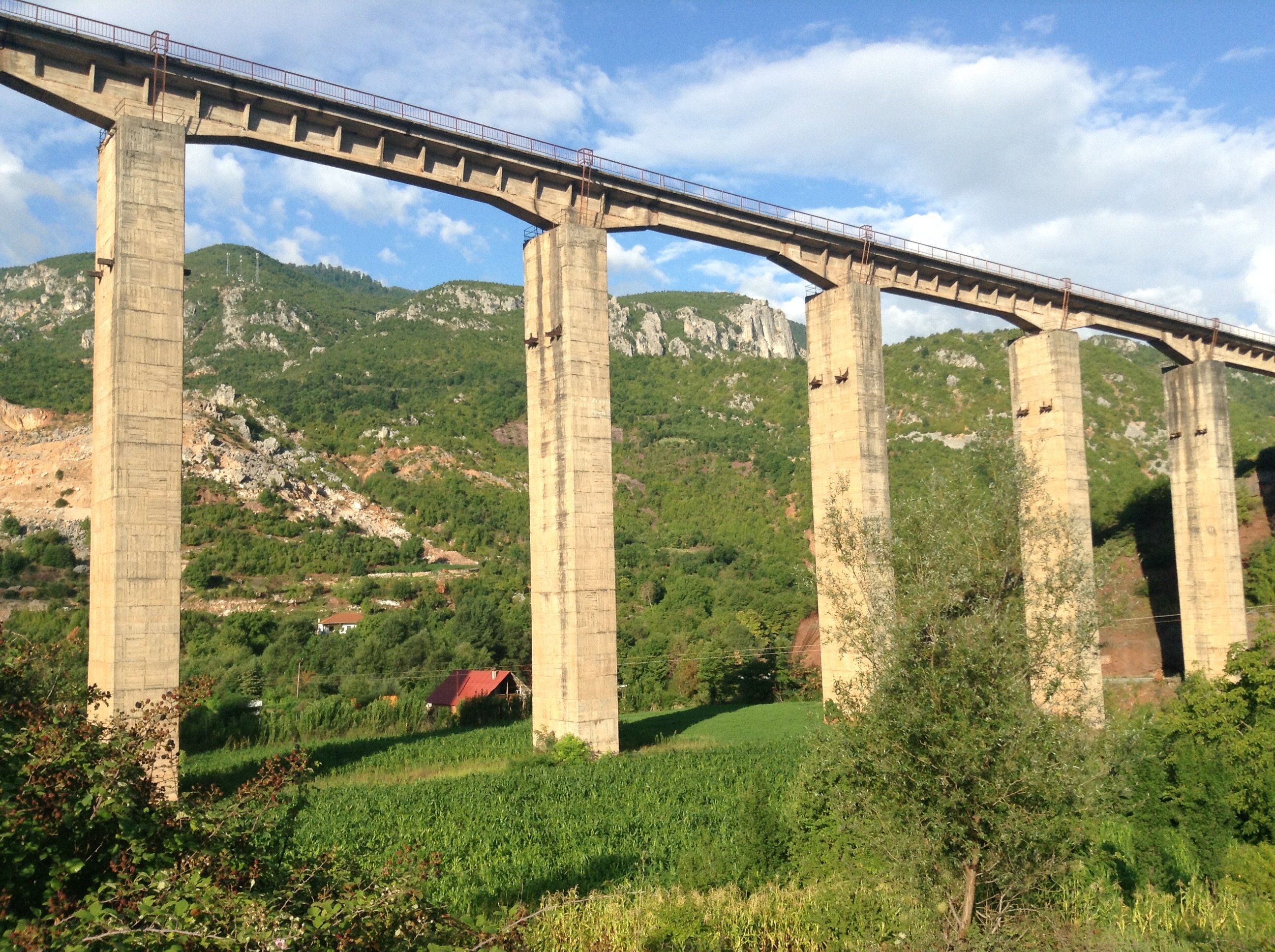 We started the day with coffee and the last of the powdered milk for our cereal. Then back on the bikes. The first section was continuing up the Shkumbinit river valley from just outside Librazhd towards Perrenjas. The valley was populated and verdant. In contrast to the area around Tirana, there was less obvious poverty and much less rubbish at the side of the road. The road wound up and down, but more up than down. There were frequent settlements and the views of this mountainous river valley were lovely in the early morning light.