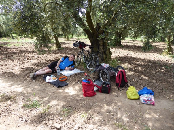 But – and it is a big “but” – it was a brilliant, fascinating day which brought out the best and worst of Turkey. We started with a climb and then noted a problem with my front derailleur – the mechanism that changes the chain between the front chainrings. As we were about to start a 500m climb this was IMPORTANT. Not being able to get into bottom chainring on a 10%+ climb with a 25kg trailer is a degree of masochism I will forgo. They are tricky things – another casualty of the flight handling I think. Anyway 40 minutes later it was stripped down, rebuilt and working (well good enough).