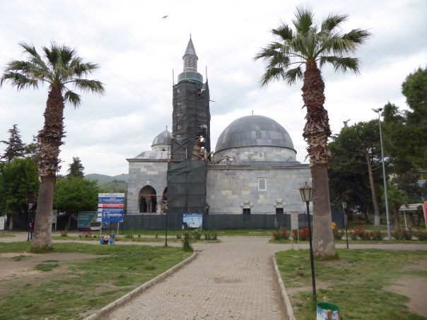 Many thanks at this spontaneous hospitality and we were on our way. Up and over the top at 550m and then whizzing down at high speed on this excellent but largely empty road to Yenisehir – a dusty but affluent town. This is a fertile part of Turkey. The fields are productive and many of the cars all look in good condition. There are still farmers coming in to town on tractors, with women in the back in full dress for the wind and dust, but we have seen hardly any full burkas. Lots of head scarfs on young women – and there are lots and lots of young people. Large families are still common and there are happy children and young people everywhere, to a far greater extend than at home.
