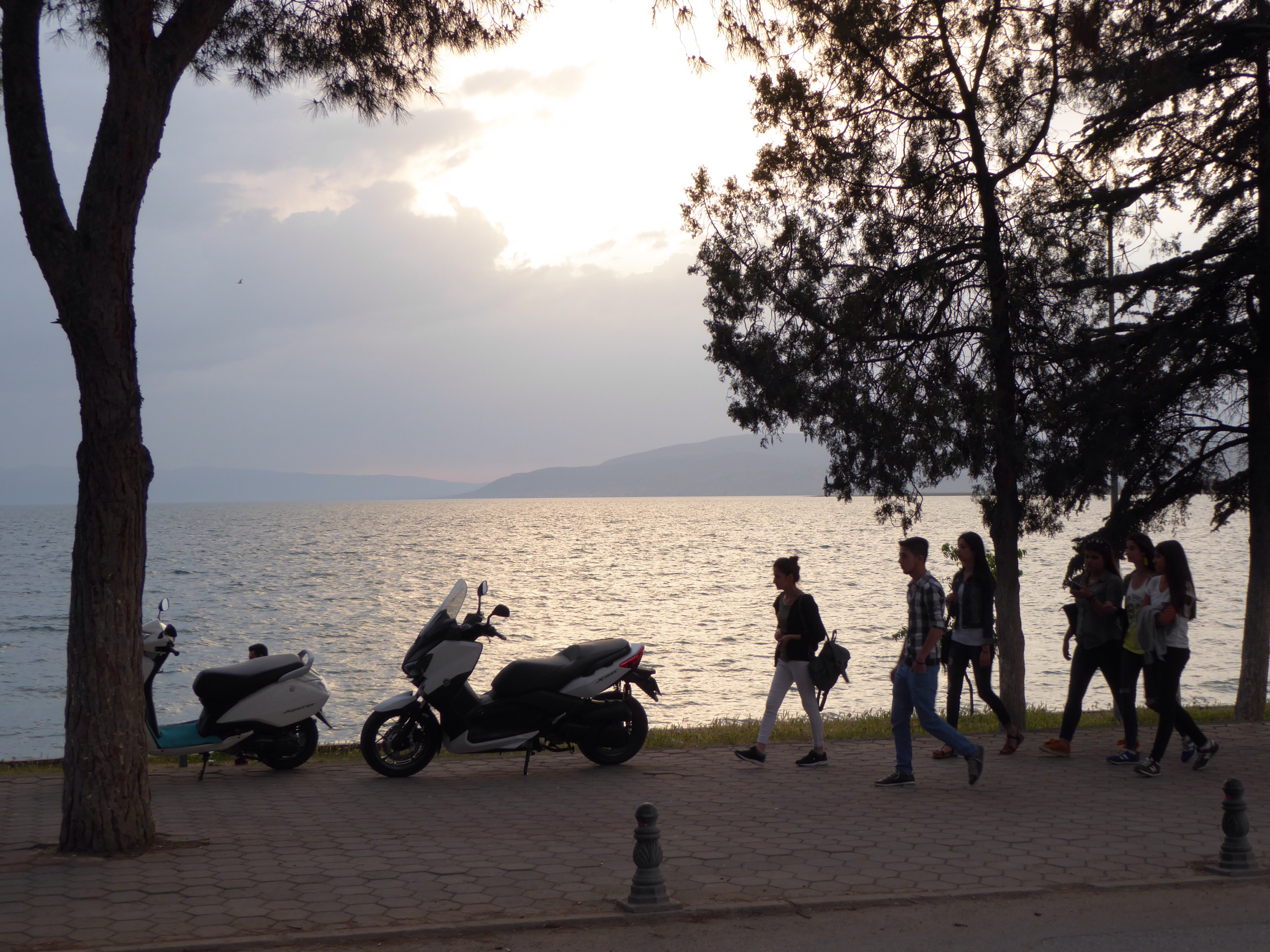 Many thanks at this spontaneous hospitality and we were on our way. Up and over the top at 550m and then whizzing down at high speed on this excellent but largely empty road to Yenisehir – a dusty but affluent town. This is a fertile part of Turkey. The fields are productive and many of the cars all look in good condition. There are still farmers coming in to town on tractors, with women in the back in full dress for the wind and dust, but we have seen hardly any full burkas. Lots of head scarfs on young women – and there are lots and lots of young people. Large families are still common and there are happy children and young people everywhere, to a far greater extend than at home.