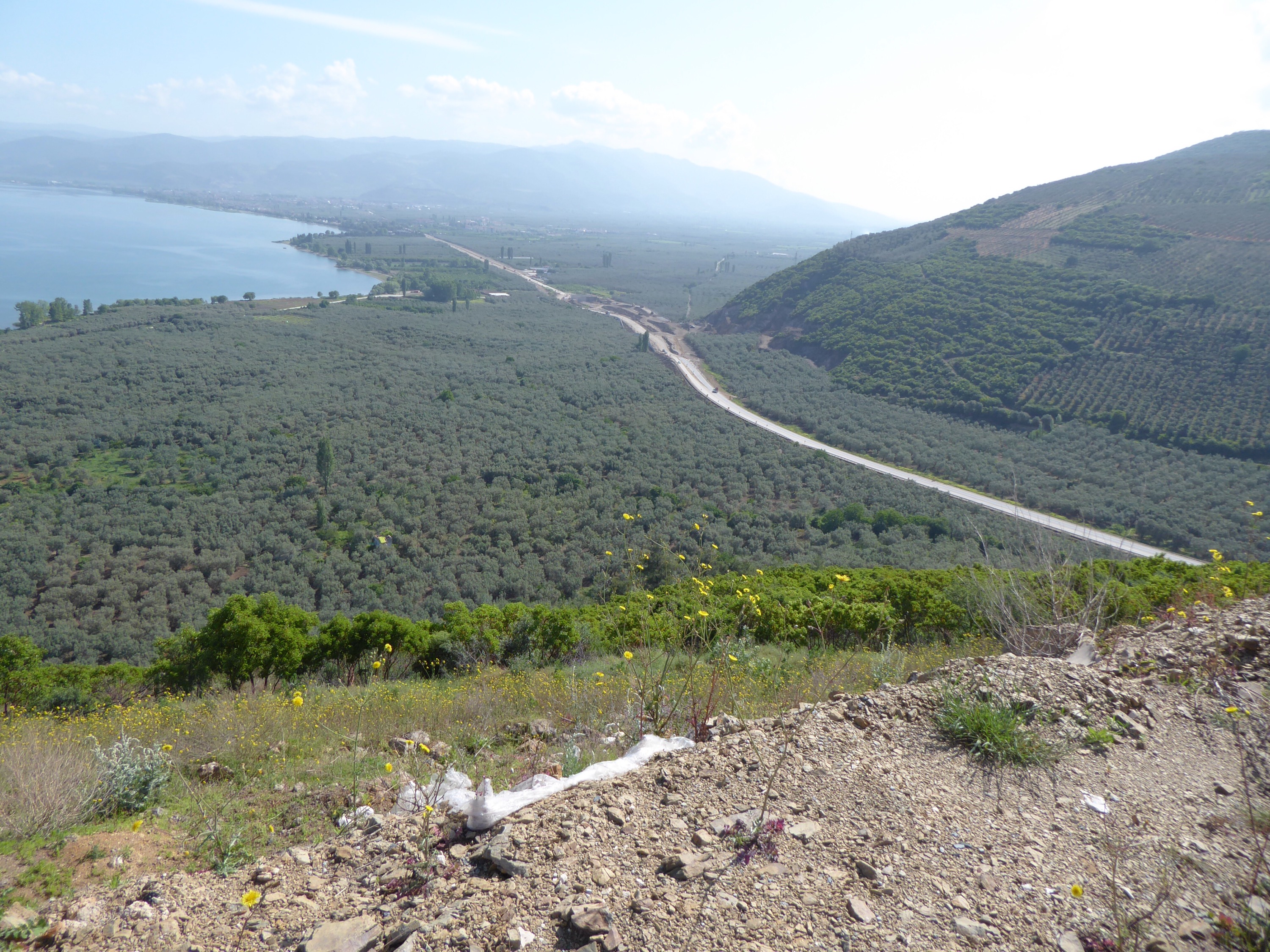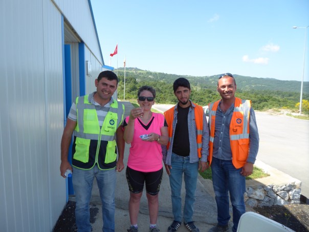 The road climbed above Lake Iznik, giving some brilliant views. Then, after about 400m of climbing, we called a halt at a group of huts. There were some workmen who we asked for water – and in true Turkish style insisted we had both tea and water. Relieved, we sipped tea and tried to converse in a limited way.