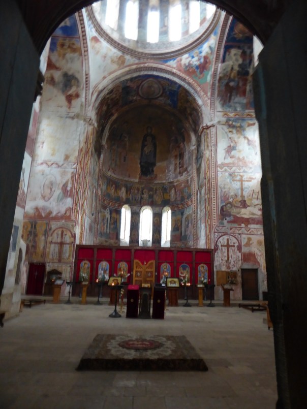 The 11th century cathedral was fantastic. Enormous with a simple beauty.It was built around an original 4th C church which is still within one of the chapels. Being a Sunday the piety and faith of adherents was on show in the cathedral – with multiple kissing of icons, repeated crossings and the touch of the priest was clearly a sign of acknowledged subservience by the laity. This was not religion on show but religion being practised. However people chatted during the service and there were priests on mobile phones inside the church.