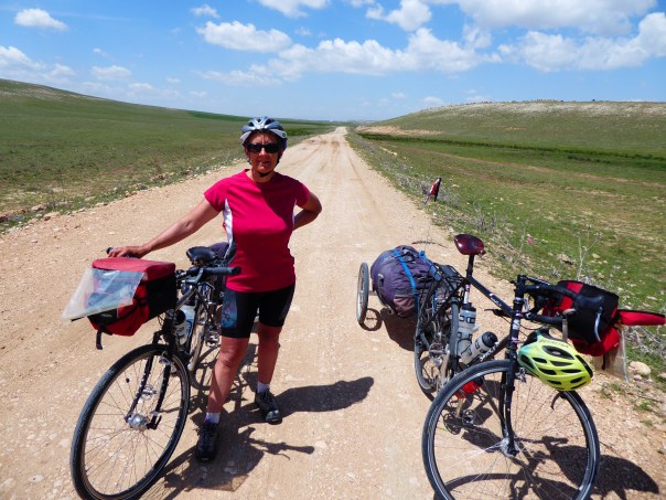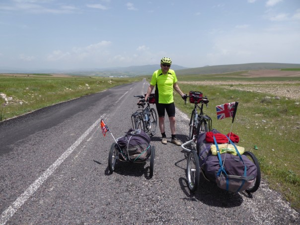 The guide books had said that there was not a road between Divrigli and Erzincan but there was a road marked on the map and on google maps and a blog we found confirmed there was a paved road through so a few km out of town we turned off the main road and started golng up and up and up. After a few km the road degenerated into a gravel road as road widening was clearly going on. Going up slidy gravel climbing in bottom gear was a challenge to say the least but luckily it only lasted 6km until we were back on paved road.
