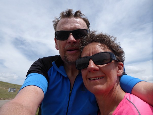 We climbed gradually along the the river valley and then steeply at the end. Time somehow suspends doing a long bottom gear climb. Km crawl by and we creep up goal by goal – just get to that bend then have a rest, just get to that sign and we’ll have a drink. Eventually we made it to just over 1700m and sat at the top eating lunch looking out over rust coloured hills. A bit more up and down and then down down down on the descent into the next valley (4 hours up, 45 minutes down!).