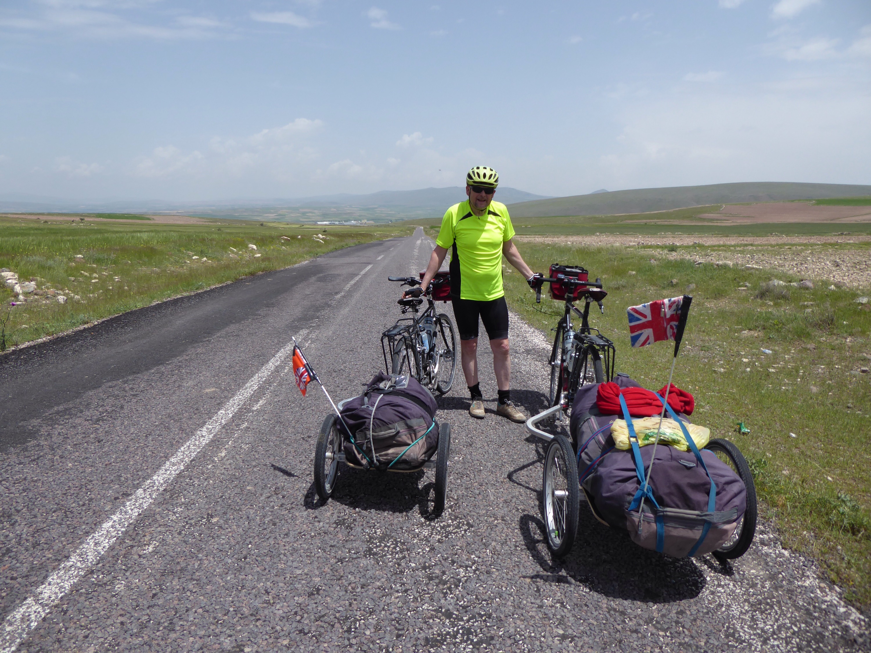 The gate was opened by a gun wielding soldier who looked younger than any of our children. With the help of google translate and someone who could speak a little english we showed them the fuel bottle and explained it was for cooking. This they understood but for reasons we could not fathom we had to go top a petrol station 4km back the other side of town (except perhaps this was a state run petrol station). The police promised to ring the petrol station to authorise the fuel. We left the trailers under the watchful eye of the soldier with the gun and set off for the petrol station (remembering at the last minute to take the fuel bottle with us!). Needless to say it was the other side of a hill but eventually the fuel was brought without a problem and we were back hitching up the trailers. We were an hour on and had done 12km and 150m of climbing before we had even started!