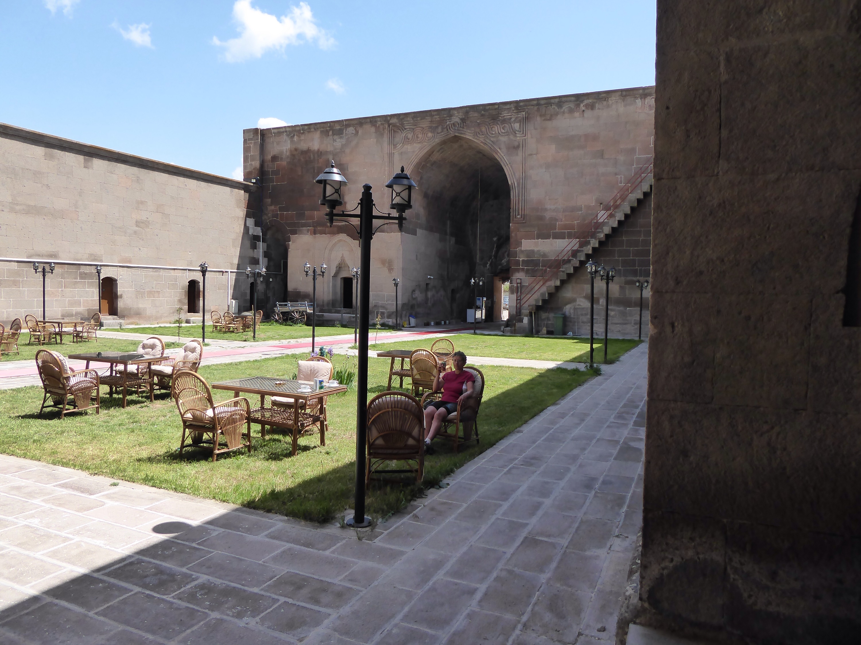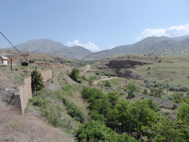 We hadn’t done a vast number of km but we were tiring but still a few more ups and downs getting rather slower. Thunder echoed aroind at one point with black clouds around but we managed to avoid the thunder showers. At last the final (we thought) descent down to the main river valley – a early stages of the great river, the Euphrates. We were directed to a new bridge and new road and quickly it was clear that this was due to the construction of a large hydroelectric dam. More up to get around the dam and along to the town of Ilic.