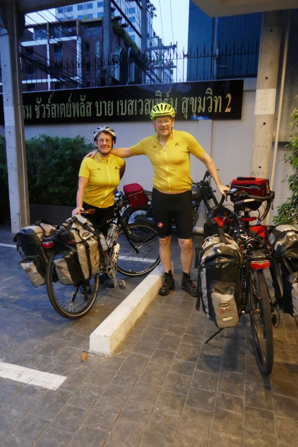 We had both missed a night’s sleep (more or less) and so dozed, went for a swim in the pool on the 9th (and top) floor of the hotel and then I used the gym for a workout. I got the impression that visitors used the Bar and the pool more than the gym. We ventured out to find phones and provisions for the road. We were 2kg overweight coming over (but not charged) but brought no provisions with us at all. We needed tea, coffee, milk powder and a few things to keep us going. We found a supermarket in a shopping centre. This was one of hundreds of shopping plazas across the city. Mr Google told us that there is 25 sq km of shopping plazas indowntown Bangkok. This appears to be true.