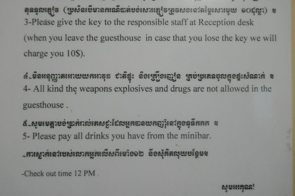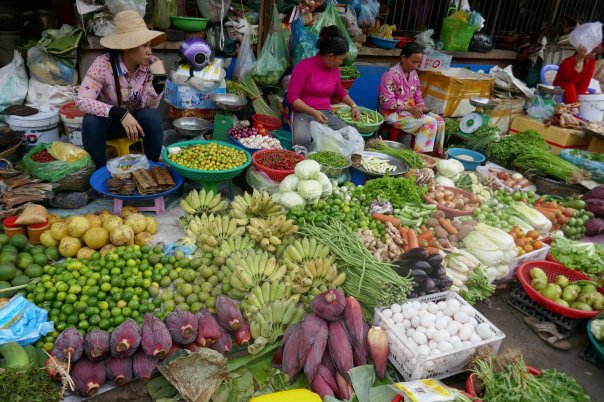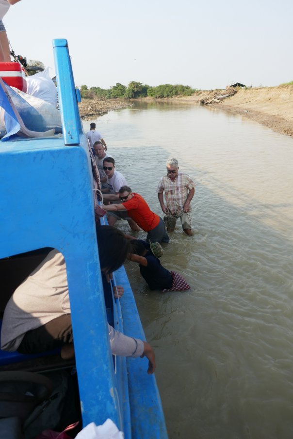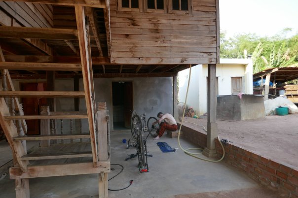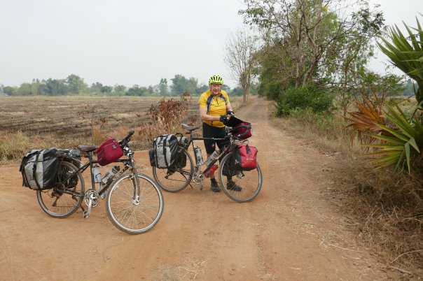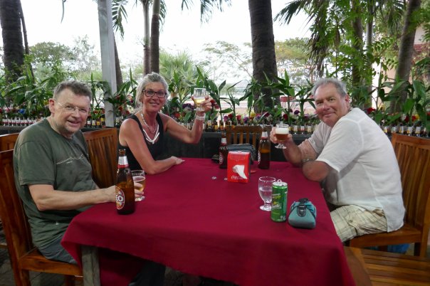 We needed to go into the centre of Siem Reap to find provisions (although there are a lot of small shops they carry few provisions – crisps and snacks but little substantial). As we paused to adjust the bag, 2 cyclists passed us – “they are touring cyclists” said David (clue – dusty bikes, numerous water bottles, handlebar bags) “let’s catch them up”. We met Sam and Matt who had in fact just met themselves cycling on the road. The 4 of us therefore went of a beer (toasting our friend Pat who has a significant birthday today) and a meal on the infamous ‘Pub Street’ (in fact food was very good) and swapped travellers tales and had a very enjoyable evening.