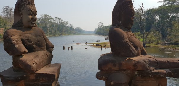 The guide books rate going to see the sunrise over the temples but we decided we did not want to share the sunrise with thousands of others and left our little apartment as it got light. It was about 10km to the site via the ticket office. We arrived as many were leaving to have their breakfast after seeing the sunrise so our first couple of hours looking round the magnificence of Angkor Wat was cool and not too busy. Our previous temple visits had layered in quite a lot of knowledge and history already so we did not feel we were starting from scratch and just tried to take in the building and carvings.