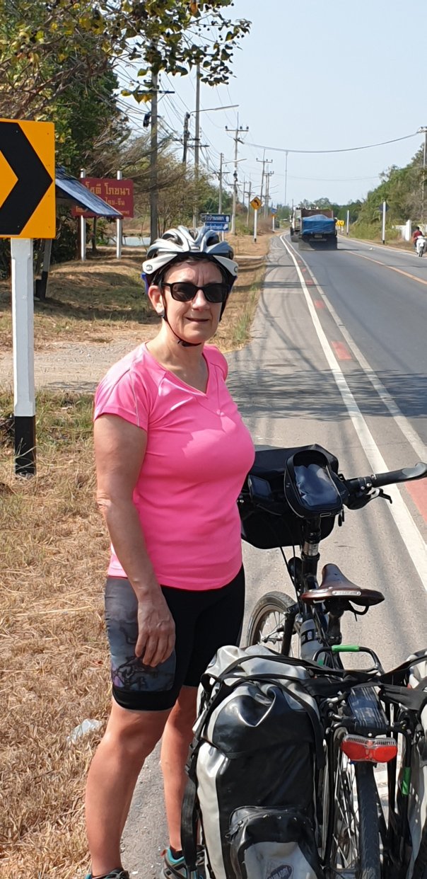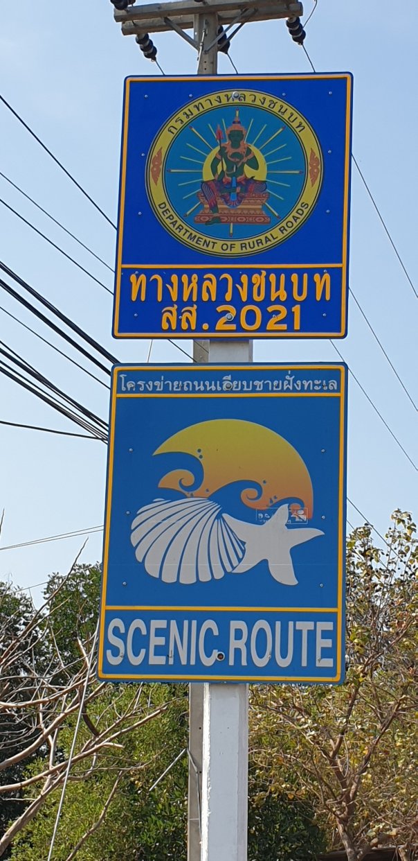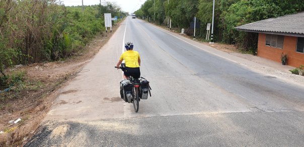After Prachuap we were soon in the second third of the day. Here is a very thin strip of Thailand, very close to the border with Myanmar, which at times was only about 12km away. There was literally only one north –south road, the infamous Highway 4, and so there was no other choice for the next 28km. At least the shoulder was wide and very well shaded at that time of the morning (still only about 10.30) with little wind. Small blessings as the traffic roared by. We powered on up and down small undulations (a change from pancake flat) and breathed a sigh of relief when we could eventually turn off.