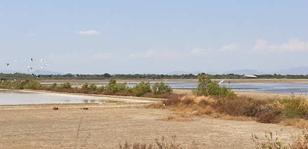 It was delightful – flat, a good surface and little traffic. We passed salt flats and pools where they breed prawns and shrimps. Next time I get an M & S prawn mayo sandwich, I will think of these extensive pools, egrits flying in flocks overhead and workmen and women toiling away in the heat.
