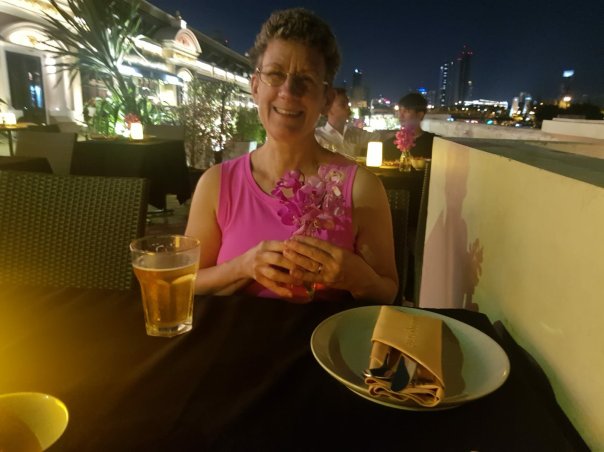 We finished the day with a lovely evening amble on the bikes into the tourist bit of town and a fantastic Thai meal on a rooftop restaurant overlooking the river. The tour boats ply their trade up and down the river – with cargos of passengers from the massive cruise liners that dock in the bay. So all that some of these passengers see of the wonderful old town is a view from a river boat – entertained by a band and someone singing out cover numbers. We get the smells, the chaos and the smiles on our bikes. It is a privilege to be on 2 wheels and self-propelled.