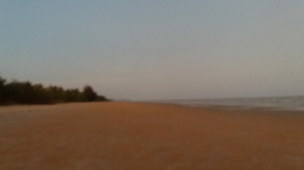 The road was again beautiful and quiet. Coconut, rubber and banana trees in abundance. We passed through small friendly villages but hardly through so much as a town. It was glorious riding. We made our way down the last 2km track to find the homestay but unfortunately when we got there they announced it was closed (it was still showing available on booking.com!). Undeterred there was another homestay on the other side of the peninsular, only a few km away but up a very steep hill – first time pushing the bikes up this holiday! This time it was down an even smaller track that opened into a beautiful bay. Unfortunately the homestay, which was the only building on the bay, was locked up. It was such a lovely spot that we decided we would camp but we were unprepared for that and had no food so we pedalled off again in search of provisions. We found a tiny shop a few km further on but it had so little in that we could not even find enough to rustle up a meal (although we would have been fine if we wanted to buy 20kg of rice or any amount of toiletries!). By the time we pedalled a bit further we had gone full circle and we were back where we started so gave up on the idea of a half-day and pedalled on south. If anything the road was even quieter, undulating along the coastline. But the 2 hours we had wasted earlier meant we were at that crux time of the day – at about midday – when the thermometer hit 39 degrees. We managed another 18km to the next ‘town’. There were 3 hotels marked on googlemaps but 2 were closed. Luckily the third had someone there. The accommodation was in rather shabby bungalows but perfectly sufficient for our needs and was right by the seashore.