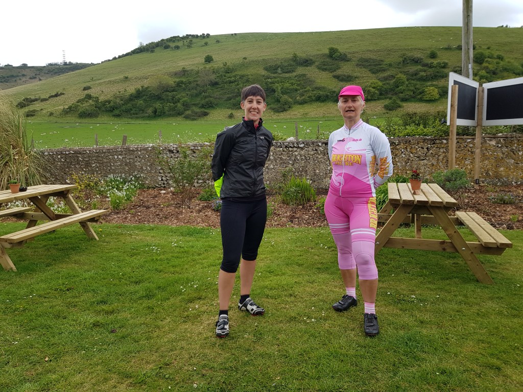 We stopped for coffee at a beautiful pub, nestling at the foot of the downs. There we met 2 women riders from the Brighton Mitres cycling club who were sussing out rides as leaders of women only cycling trips. They were great company and were full of stories about life on the road. To our slight embarrassment they insisted on buying our coffee for us – we can just about cope with that level of embarrassment! If either are reading this – thanks, happy cycling and it was a pleasure to meet you.