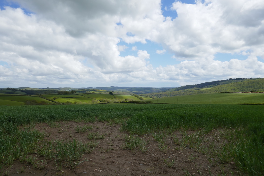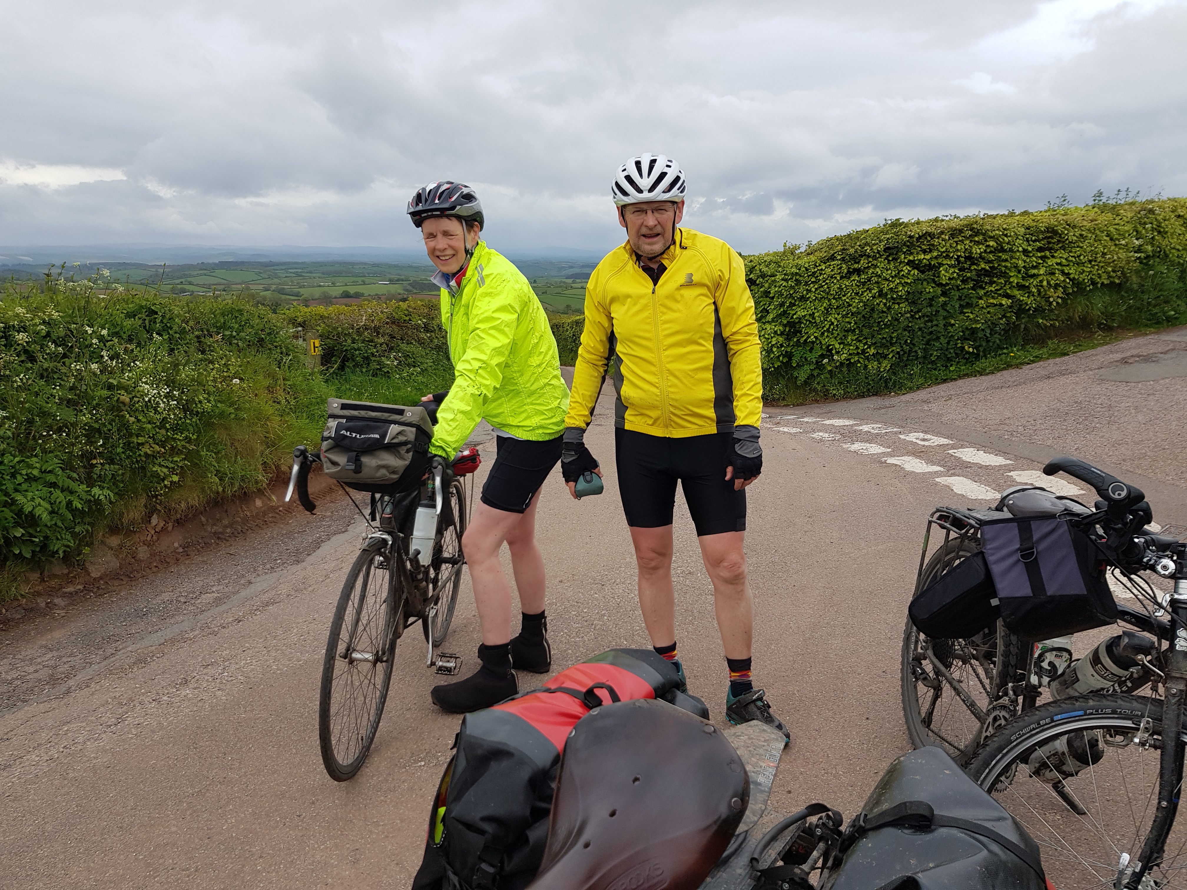 The day in fact dawned sunny and we were off by 8.15 – fuelled by scrambled eggs from Kate. Kate joined us for the first section of the day – which was also the hilliest. She nobly offered to take one of my panniers again (key lesson number 2 – always accept offers of help). We pedalled through gorgeous Devonian villages – up and down of course. Then the biggest climb of the day – at times at least 17% and probably more like 20% in places. Kate and I got off and walked but David pushed on and cycled all the way up. Super-strength!! Although it had clouded up the views from the top over to Dartmoor were magnificent. It was then a lovely descent down to the valley bottom at Bickleigh. Here we said our goodbyes as Kate turned for home; and I had to take my full load again!