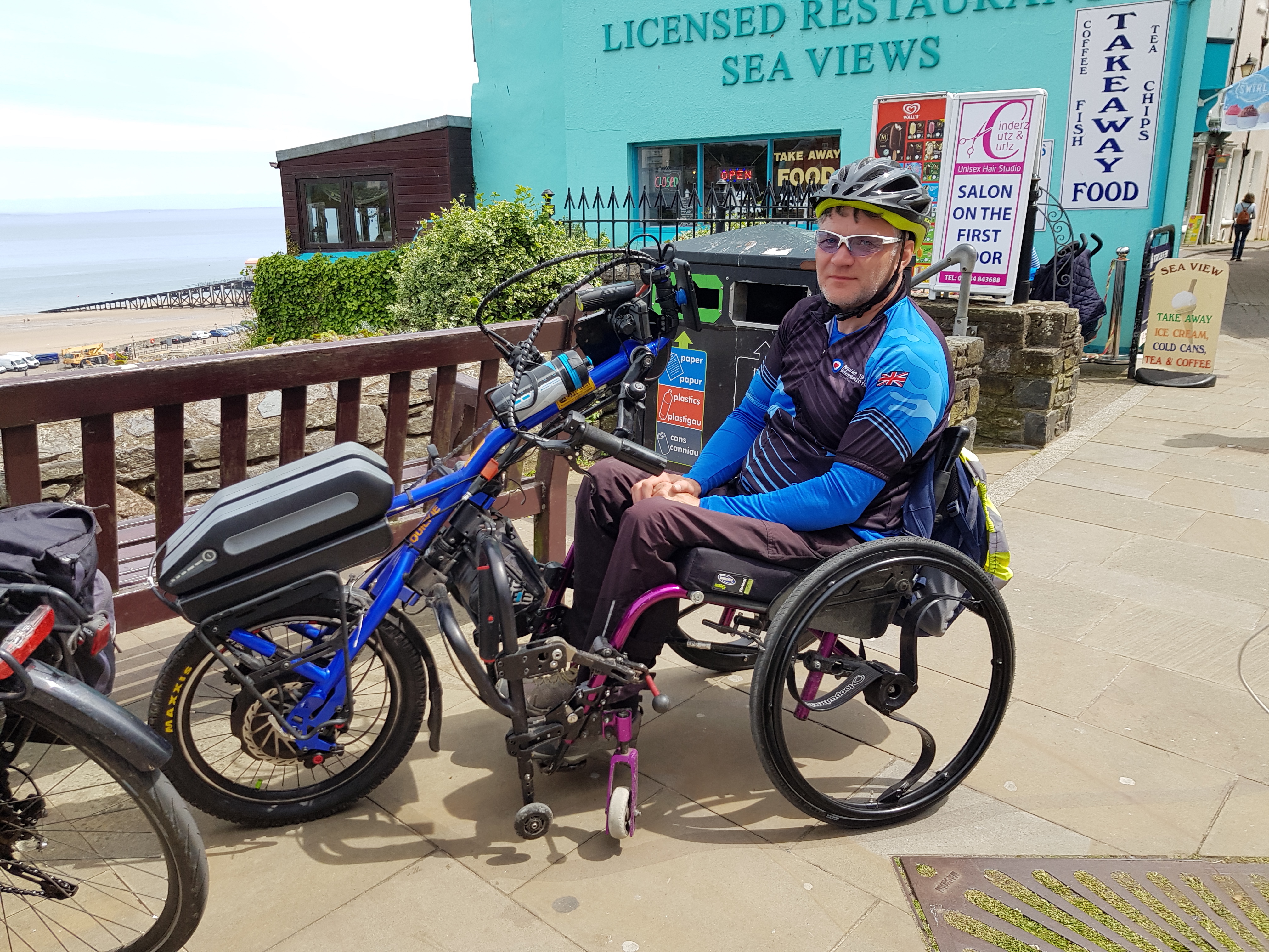 On the next door bench were another couple of cyclists so as usual we started chatting. It then transpired that one of them was in a wheelchair and had an amazing ‘hand cycle’ that he clipped onto the wheelchair and that he operated with his arms. There was a power assist battery but getting up and down these steep hills was amazing. People sometimes say we are inspiring but this guy was something else.