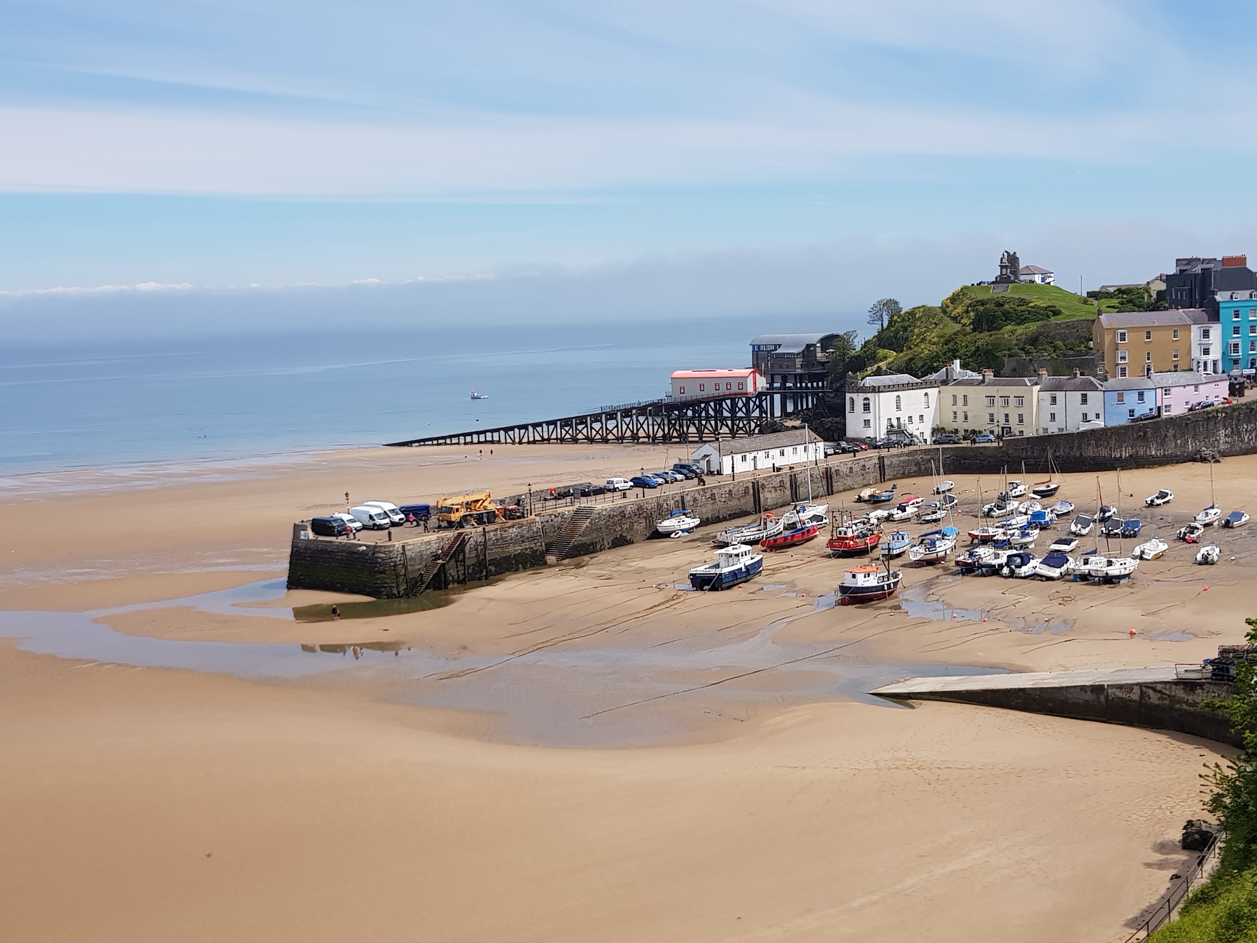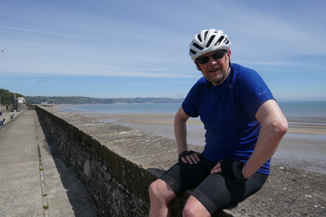 Suitably fortified and rested we continued on and battled our way our of the valley and were soon at pretty seaside villages Wiseman’s Bridge and Saundersfoot then on to Tenby. Unfortunately each of these settlements were separated by steep headlands so we were back to “powering” up 15% hills. I don’t know what was in that Bakewell tart but it seemed to do the trick at getting me up the hills! However we drew the line at what seemed like 20% and got off to push. There is no shame in pushing and it avoids older folks like us suffering injuries!