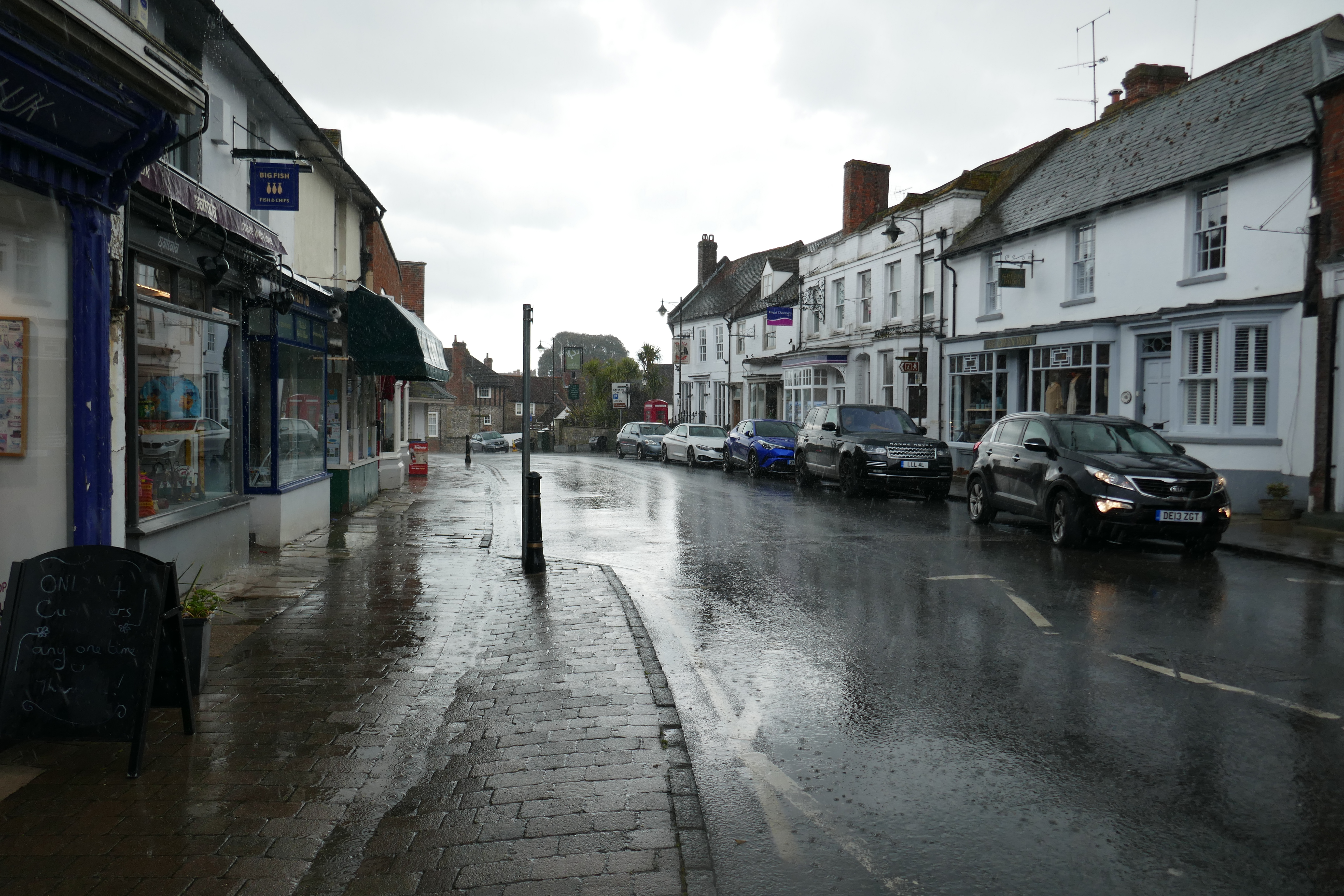 We stopped for coffee in Dorchester. It may be Dorset’s county town and Hardy’s birthplace, but it was cold, rainy and windy when we got there. The cafe kept the door open for extra ventilation – which would have been fine in May but this was November (or seemed like it).