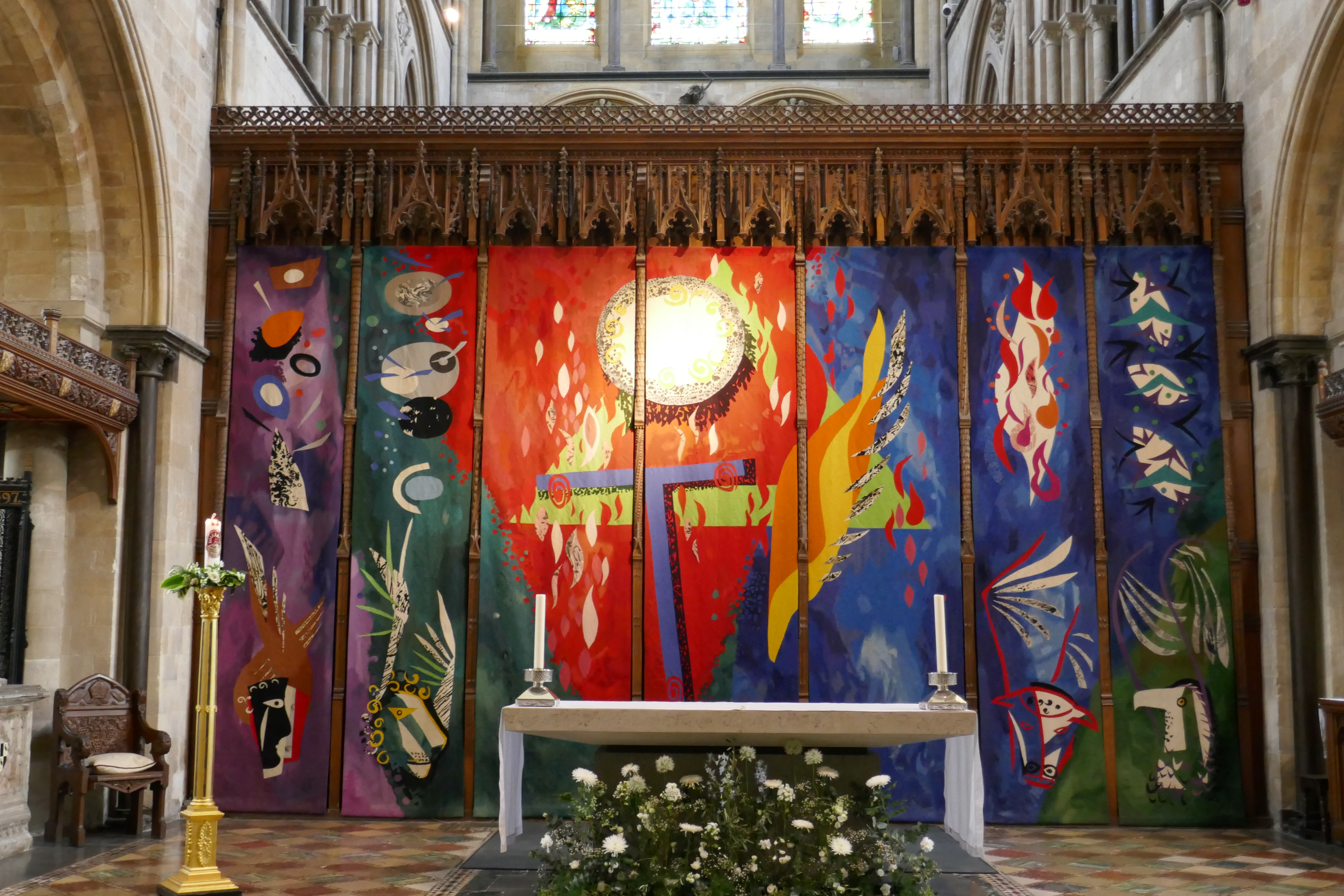 The city was lovely in the morning light. Faded splendour along the High Street and then we stopped at the Cathedral. It was 9.30am and it did not open until 10am; but it seemed open and so we ambled in. A beautiful peaceful space, mixing ancient walls with modern art. There was a Graham Sutherland portrait in a side chapel and stunning tapestries behind the alter that exuded colour to whole building. The nave was empty of chairs, perhaps showing that the thousands don’t attend on a Sunday. These buildings are the symbol of a collective faith that has now left us as a country. They are monuments to past ways of seeing the world – not necessarily better or worse – but no longer with us.