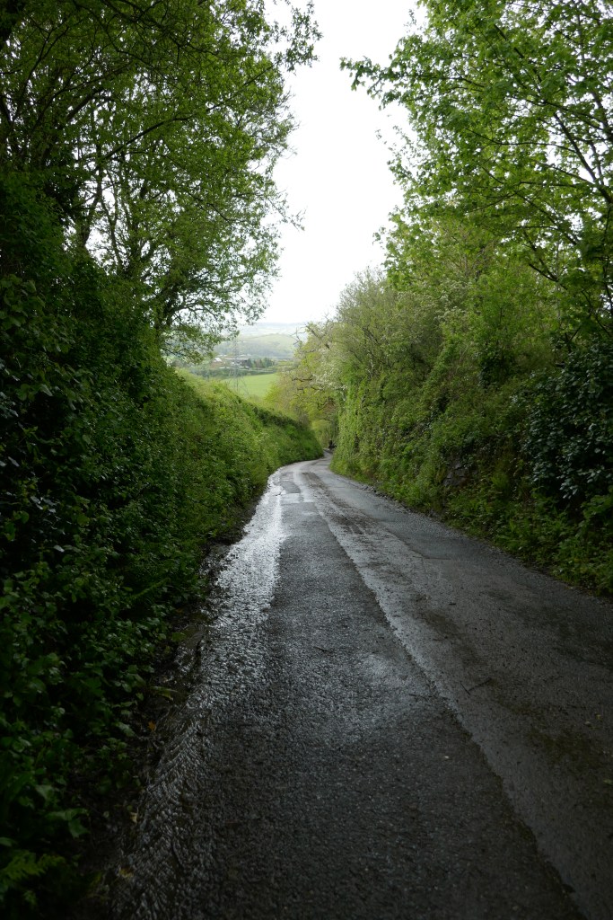 After that the climbing began – and it was tough. Devon has the reputation of being the hardest part of any Lands End to John O’Groats ride because of reasonably large and unrelenting ups and downs across the county. Up-hills are often over 15% gradient and down-hills are the same, which on narrow single track roads with a frequent potholes, adds up to slow, demanding cycling. However the rewards in terms of beautiful scenery, fantastic views and idyllic cottages with the Wysteria in full bloom more than made up for the toil (even in the rain).