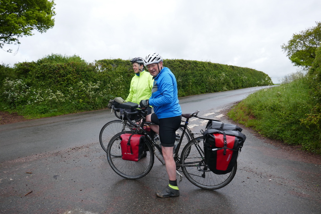 Today ambled into existence, fuelled by tea and coffee and continuing hospitality from Jane and Pete. We packed up, said our goodbyes and then went off in the wrong direction. A good start! Then further work on Bernie’s gears and an incident with a lost glove – happily found and eventually we found the route and got going. We felt like a pair or rank amateurs, not highly experienced cycle-tourists.