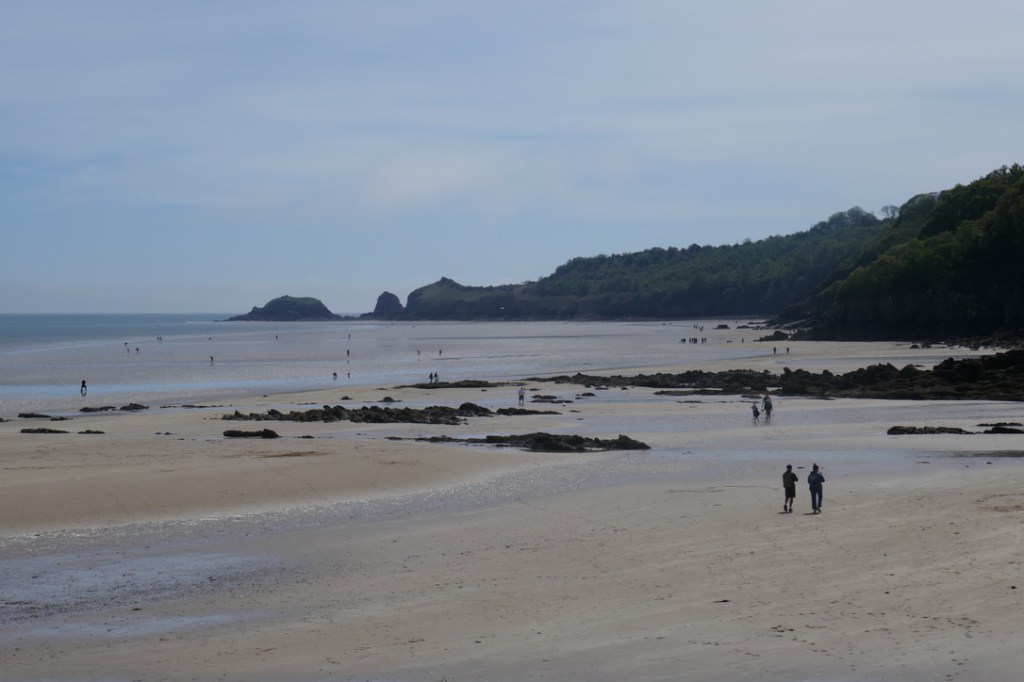 After 20km we dropped down to Broad Haven, the site of one of our least successful holidays. It must have been about 1992 when we camped there with a toddler and a crawling baby and it rained continuously for days – so we gave up and went home rather than face another day of trying to stop a toddler making mud pies in the damp.