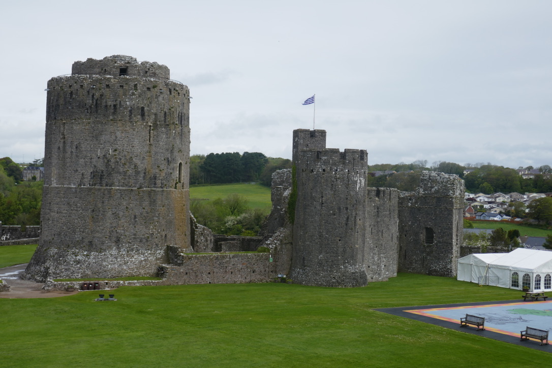 Pembroke is a pleasant little town with a castle perched on the bend of a river. We managed to time our visit to the castle to a time with the least rain. It felt authentic to be damp and grey! The oldest parts of the castle dated from the 1100’s but a timber castle had been on the site before.