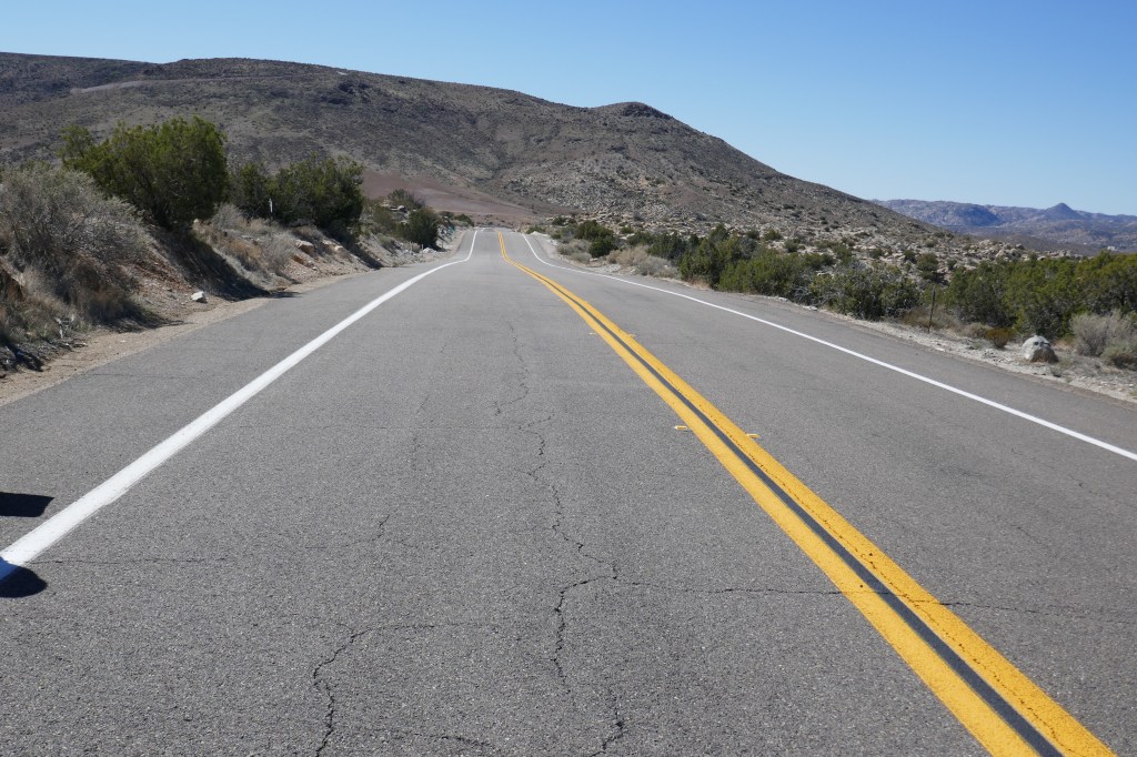 Finally we left the freeway in the desert at about 400ft! What a descent – 25mph all the way on pristine tarmaced hard shoulder. Only a few trucks blew their horns at us – but I cannot say if they were friendly or irritated that they were sharing the road with such low life as cyclists.