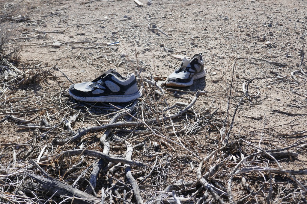 Every picture tells a story – here were a pair of shoes just away from the road. So what led to this? Who knows?