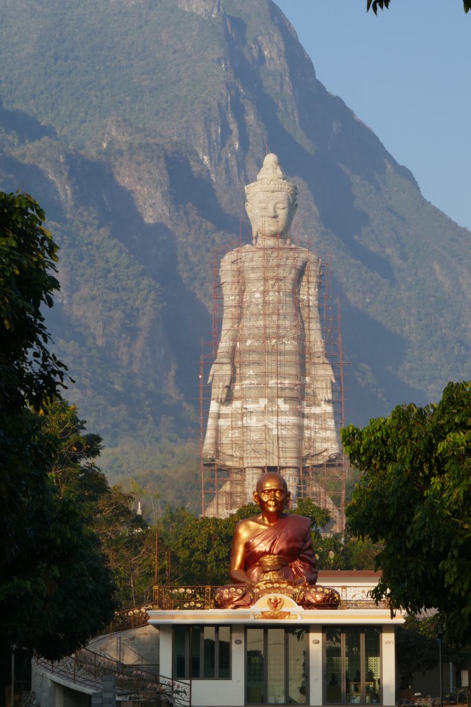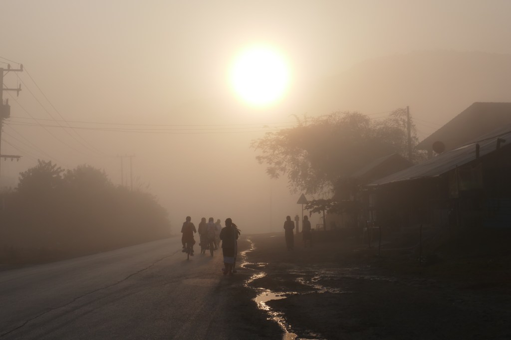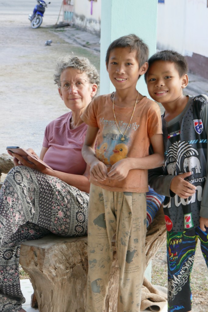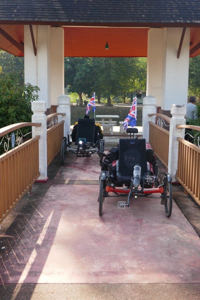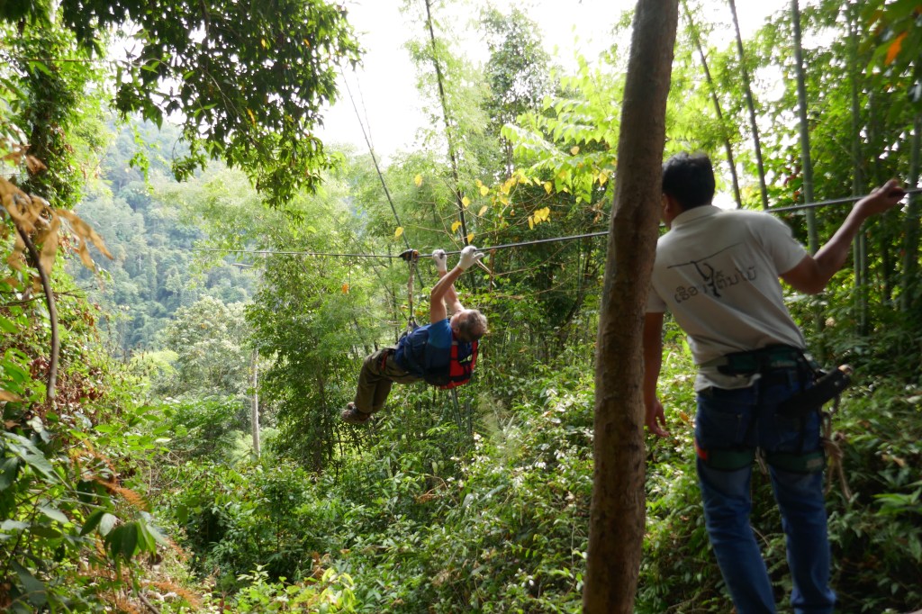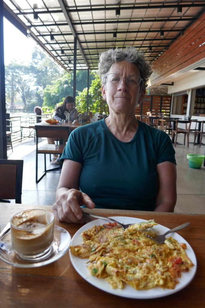 The first summit was at about 960m, our highest point on the trip to date. The road then took us along a beautiful ridge with views into the valley on both sides. We needed to ‘refuel’ and found a perfect stop for ‘second breakfast’, looking out over the mountains as we brewed coffee and ate boiled eggs and biscuits. A man on a motorbike stopped, quizzed us in Lao about our journey and we confessed we could not understand. However, “can I have a selfie with you” is a universal language and, of course, we obliged.