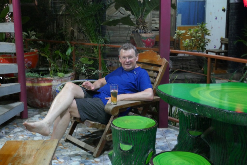 In the evening we went out to a colourful, thriving night market where stall after stall was stirring up delicious smelling food. We plumped for one that seemed very popular for a plate of fried noodles. That was pretty good but who knows precisely what we were eating.