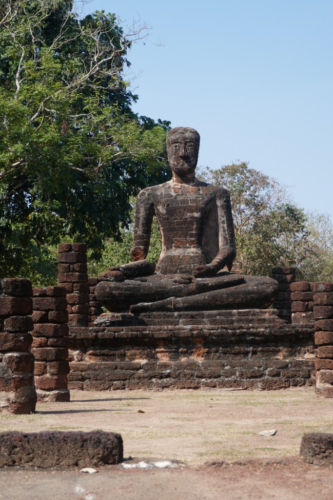 The town of KP was founded in the 11th century and built up into a fortified town to protect the Siam kingdom from the northern barbarians – in this case the Burmese.  It’s heyday was the period 1350 to 1750 when the city was protected by huge and extensive walls, containing a massive area with numerous temples.  Water was diverted from the river Ping to create a moat and there were guarded gates every few hundred metres, protecting both the city population and the temples inside the walls.  The temples were mostly from the Theravadra strand of Buddhism which originates in what is now Sri Lanka, but there is also a Hindu shrine here; showing the cultural diversity of the town in its prime and the extent of trade between different parts of Asia.