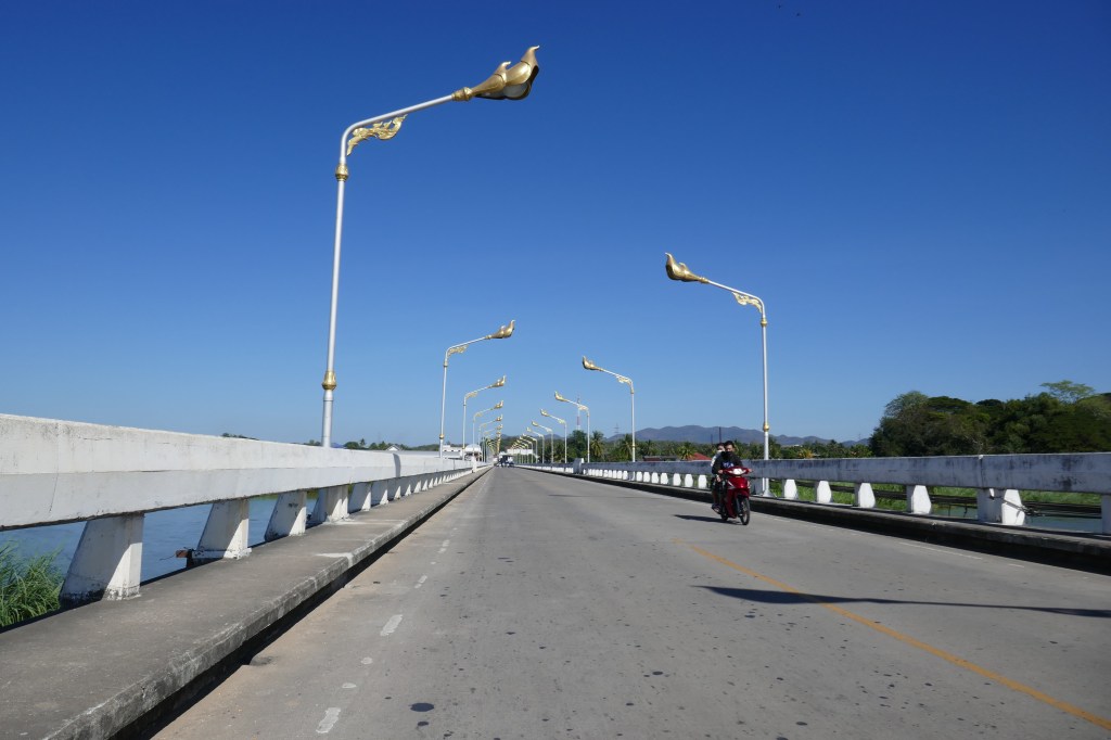 We ate up the kms and pressed on to the town of Tak. As we entered the town we joined Highway 1 for a short while – a grim line of concrete and aseptic shops along the busy highway. As soon as we turned off the change was instant with the place morphing into a pleasant riverside town. We found good coffee to give us a zizz for the final section and soon we were back on quiet, country roads hugging the river again. It was much hotter but a breeze kept the heat at bay – although we were aware that the sun had been beating down on us for hours (thank goodness for factor 50 suncream – we never cycle without it).