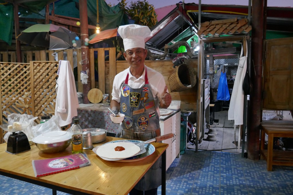 The pizzas were lovely and we chatted with him about his life, his career and his hopes for the restaurant. Ban Tak is a Thai tourist town, though European visitor numbers are down on previous years. We were the only people in his restaurant at the time and it was very relaxed.