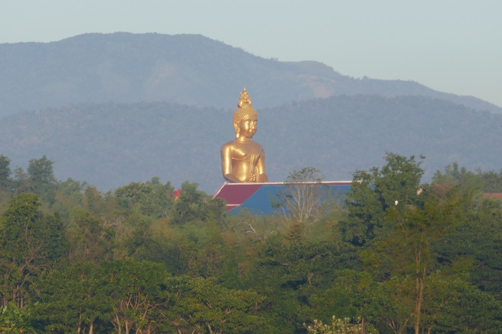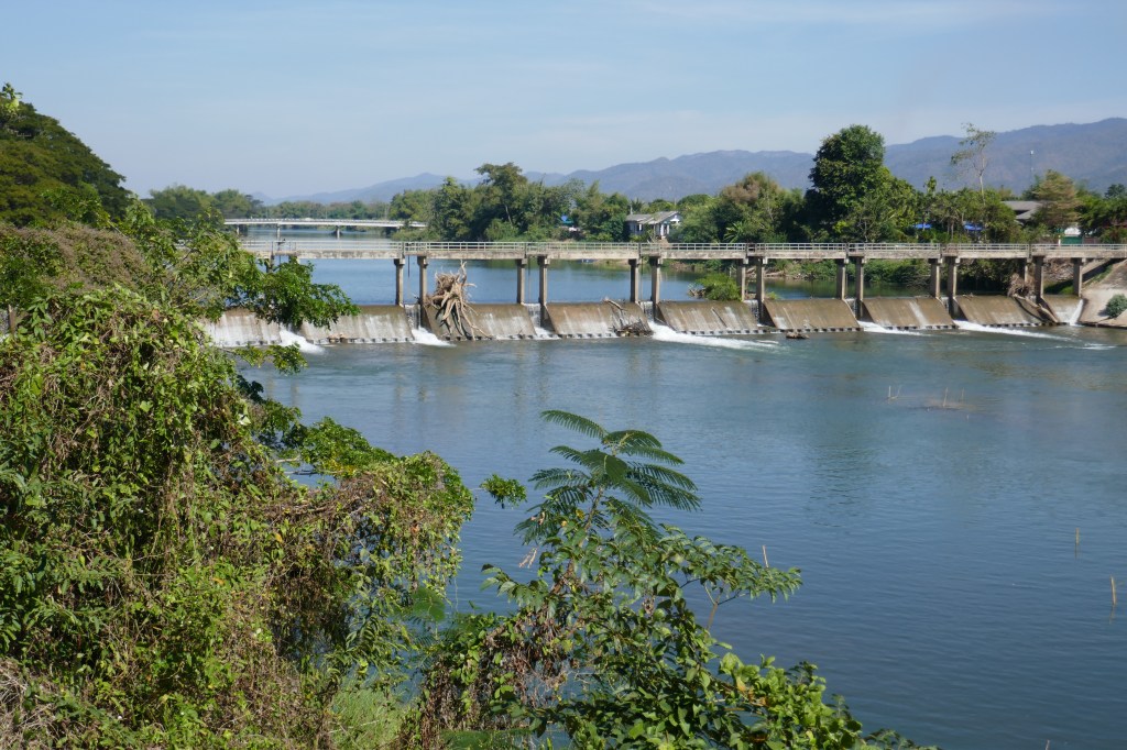 This morning was still, with a clear sky and quiet roads as we left the town of Ban Tak, following our friend, the Ping River, going northwards.  The Ping rises in the very north of Thailand and is 658km long.  It  is one of the two main rivers feeding the Chao Praya river which goes through central Bangkok and is a major source of irrigation for the farming areas we have been following for days.  Last wet season was longer and wetter than for many years (no doubt related to global warming) and so the river has retained more water in it than for many years.  It varies from about 100m to 200m wide at this point, even though we are now about 450km north of Bangkok.