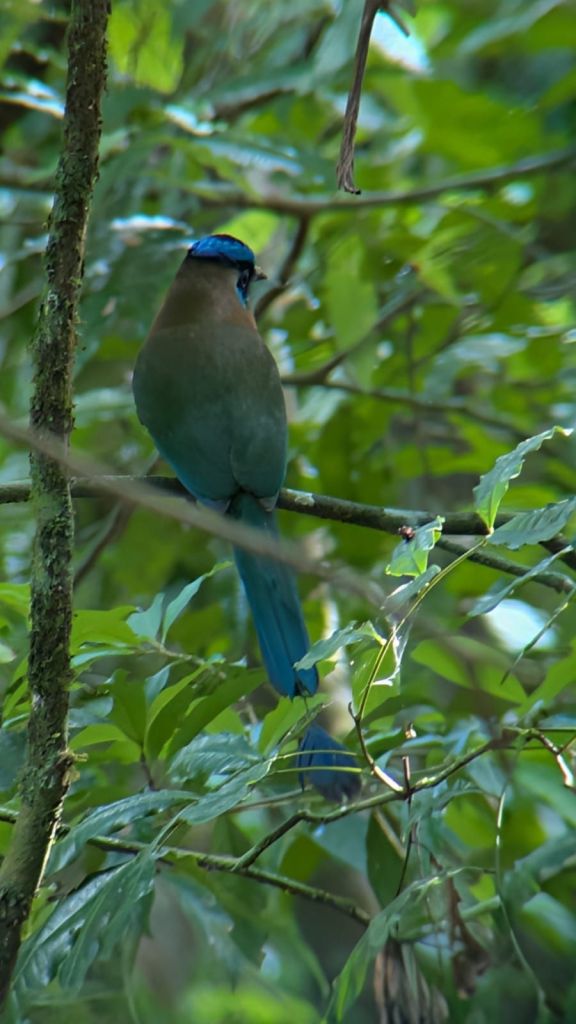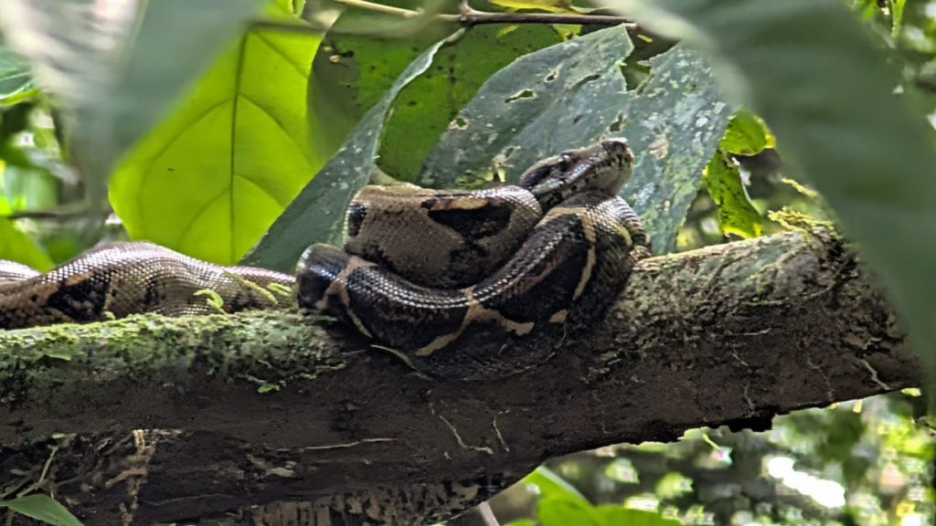 We also saw a variety of animals on the floor including agoutis, wild boar (native species), spotted wood quail, various types of hens, and many more. We saw a ‘baby’ Boa Constrictor, perched on a branch next to the path which was ‘only’ a meter long – we were jolly glad not to see a full size adult! I think we saw all of the four types of monkeys in Costa Rica (the Mantled Howler, the Capuchin, the Squirrel Monkey and Spider Monkey). The Howlers lived up to their names with loud calls which they get by having an internal reverberation system (a hole in the hyoid bone, which sits behind the vocal cords, which amplifies their calls 20 fold)