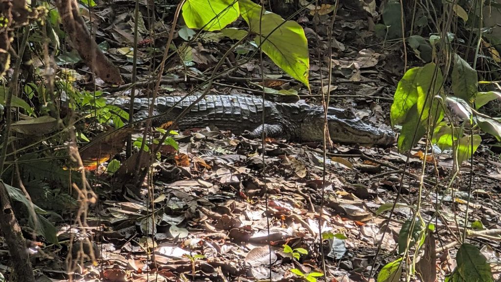 We arrived by bus to Puerto Jiminez a few days ago late in the evening. This small town, which is on the eastern side of the peninsula, is the southern gateway to Corcovado national park and was described as being less touristy than the northern gateway at Bahia Drake, which is on the pacific coast. It’s a pleasant, sleepy little town which lived up to its billing. Just 5 minutes or so to walk from one end of the main street to the other. We did not see many tourists and, although tourism was clearly it’s main industry, it also feels like a proper, working town. We spent the next day sorting, planning and relaxing. Then we set the alarm for 4.20am (yes – not a typo) and got up to walk the short distance to the pier to join an overnight trip to the Corcovado National Park, leaving at 5.30am.